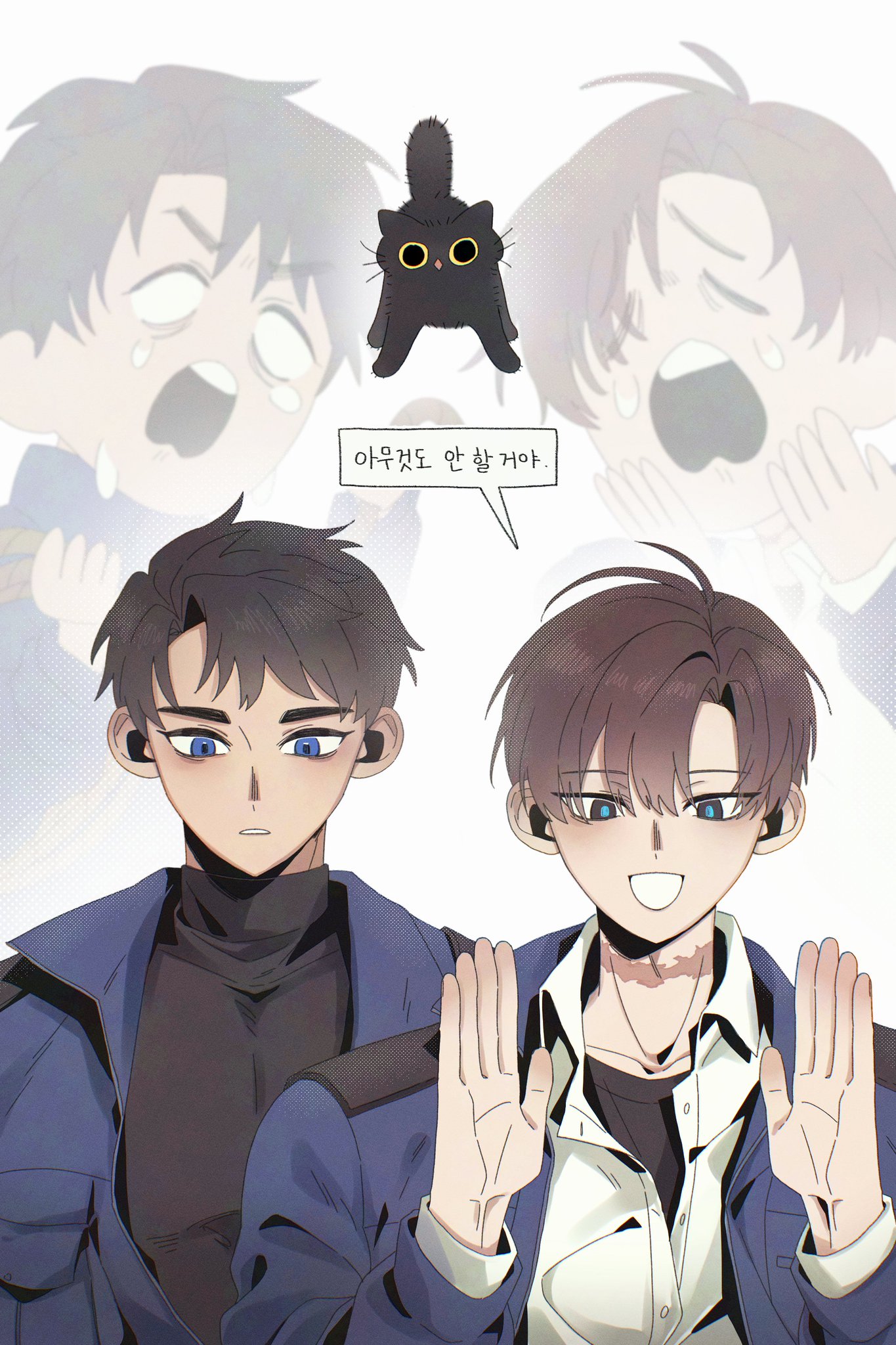 الرجل ذو الندبة في رقبته ابتسم ابتسامة عريضة وجلس في المقعد المقابل. قرأت لي سونغ-هاي عدة إشارات تدل على أن هذه الابتسامة كانت مجرد عادة، وأنه في الواقع كان في حالة من التوتر الشديد.