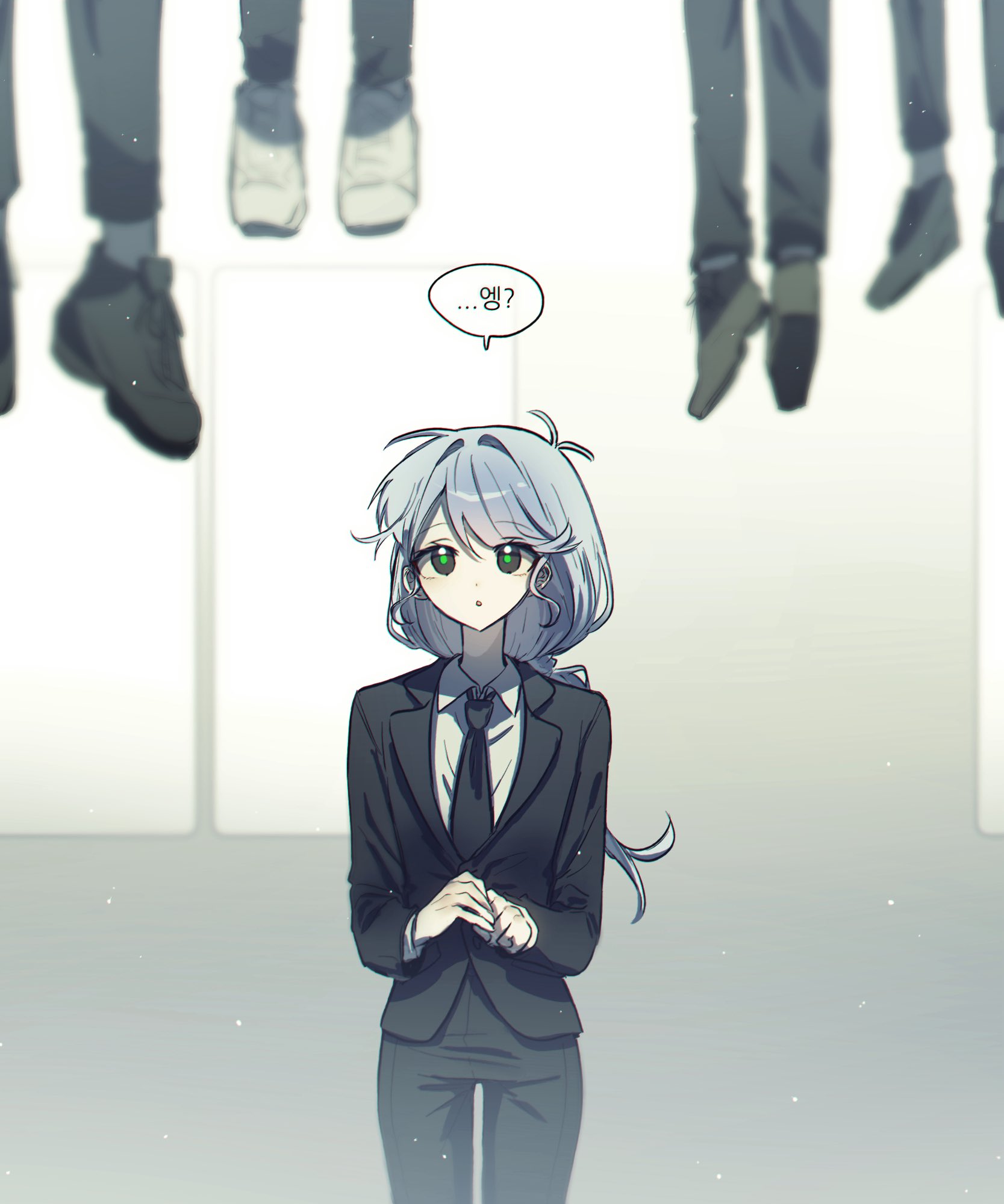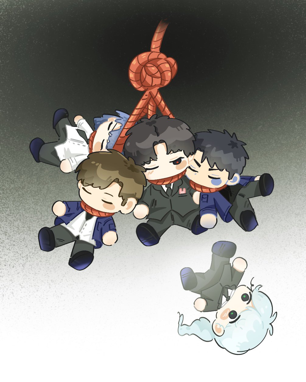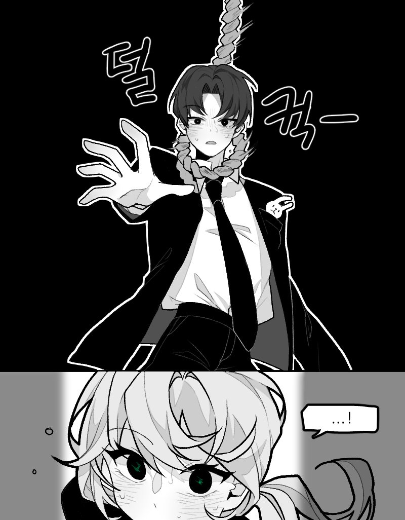 بفضل ضوء ملصق النجوم المضيء على ظهر يد نائبة القائد لي سونغ-هاي، والذي رفعته أثناء ركضها، رأيتُ حبلاً ينزل من الضباب.
