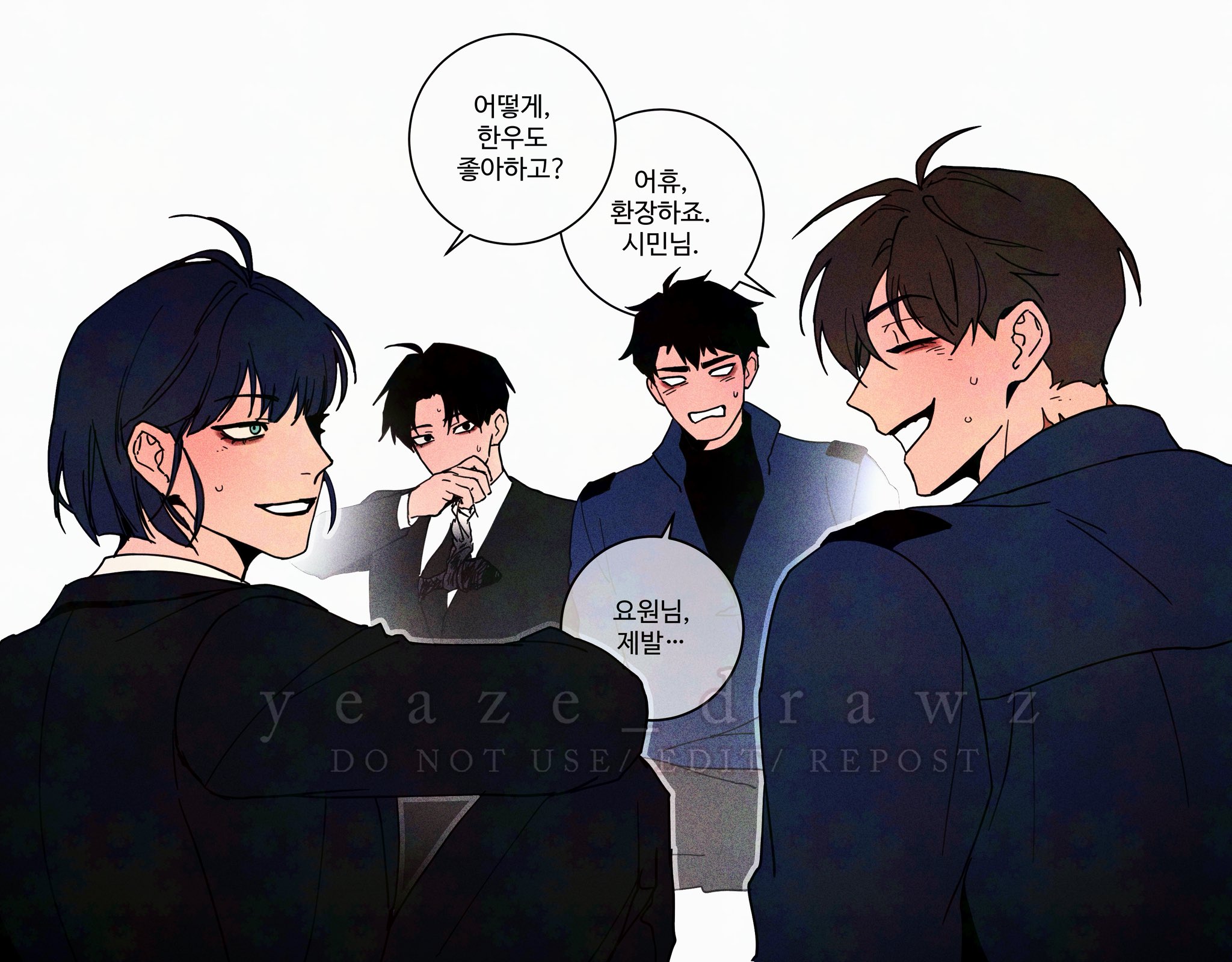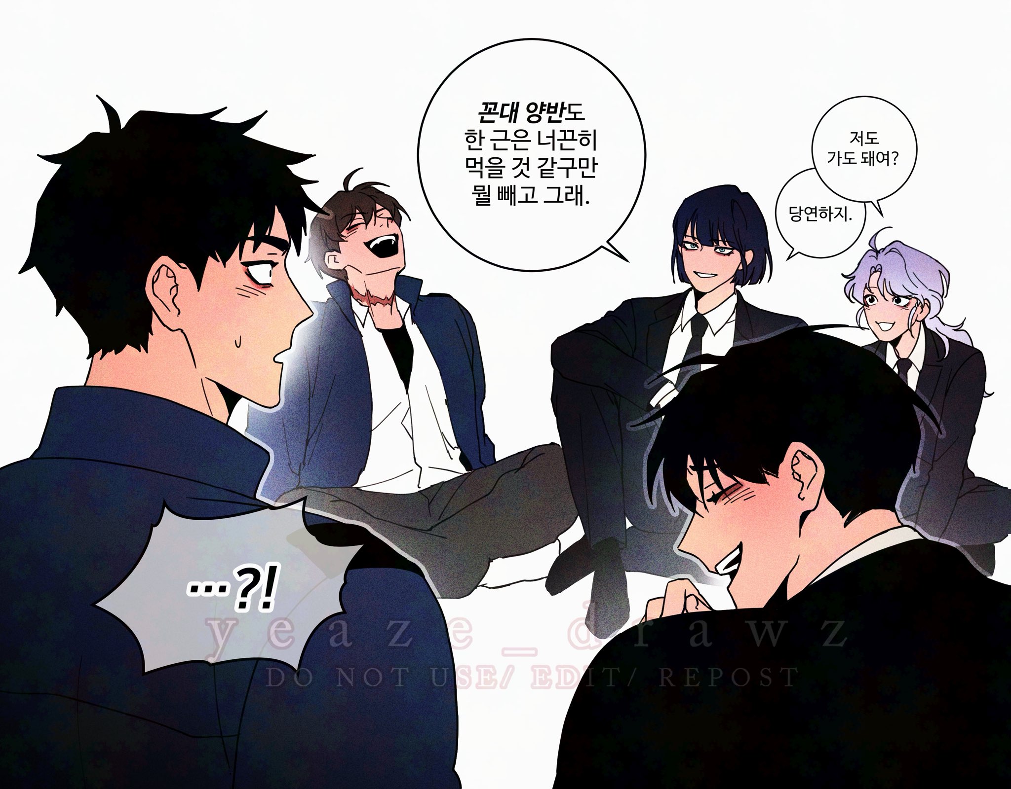 أمسكتُ بجزءه السفلي بشكل انعكاسي. في الوقت نفسه، أمسكت نائبة القائد لي سونغ-هاي بقدميه أيضاً.