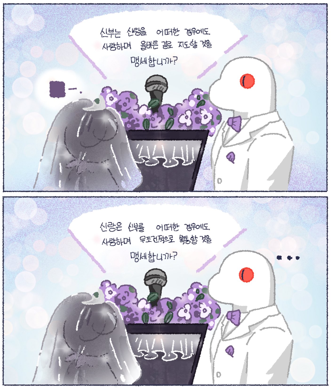 لذلك، كان يُنصح بقضاء وقت الاستراحة في تخيل 'ما هي كلمات القسم التي سيقولها العريس لعروسه في حفل زفافهم'.