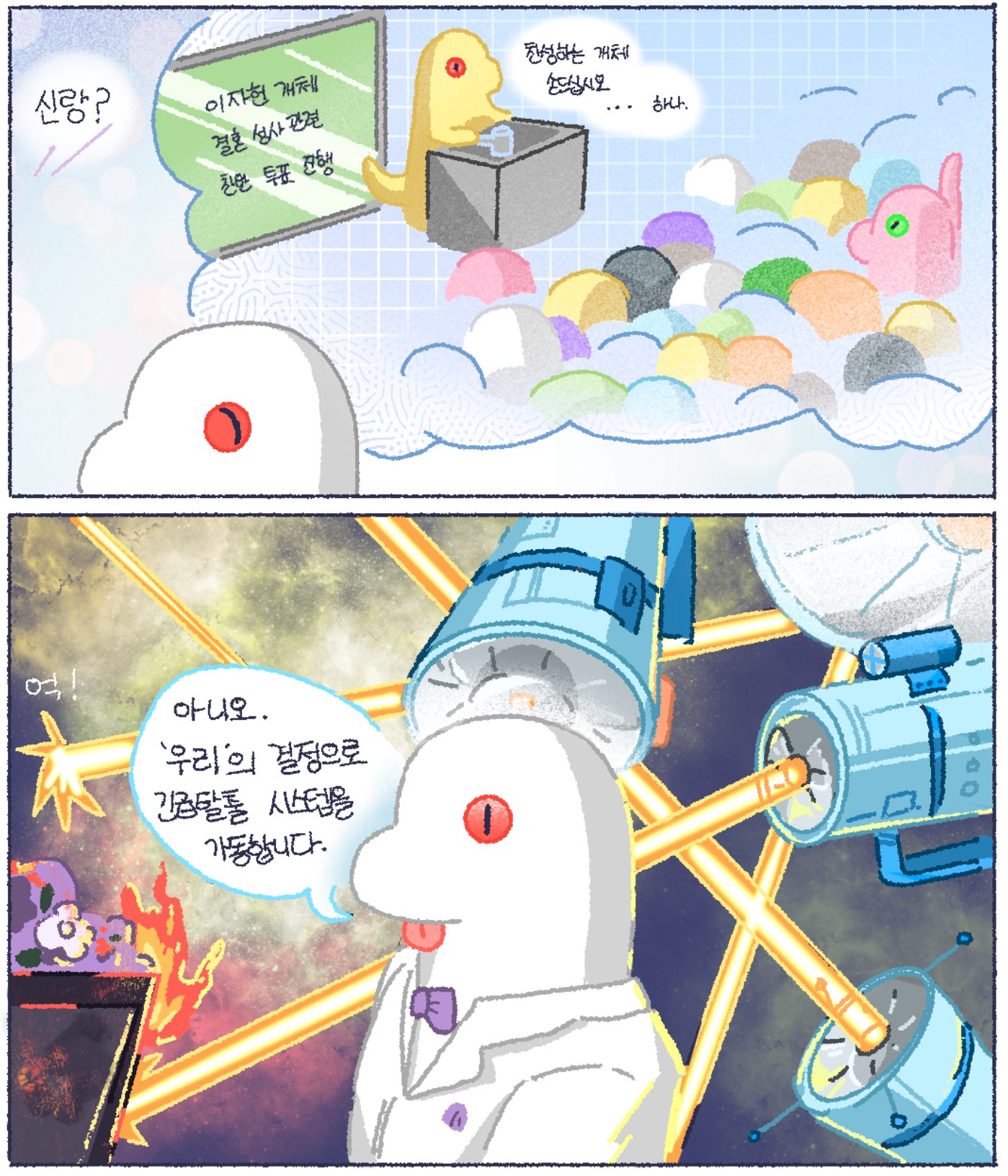 ...توجه كيم سول-يوم بهذه الفكرة إلى الزواحف الفضائية في مركز التسوق الفضائي، وأبلغهم برغبته في الدخول إلى جسد لي جا-هيون الذي كان عالقًا في قصة الرعب لمحاولة الهروب.
