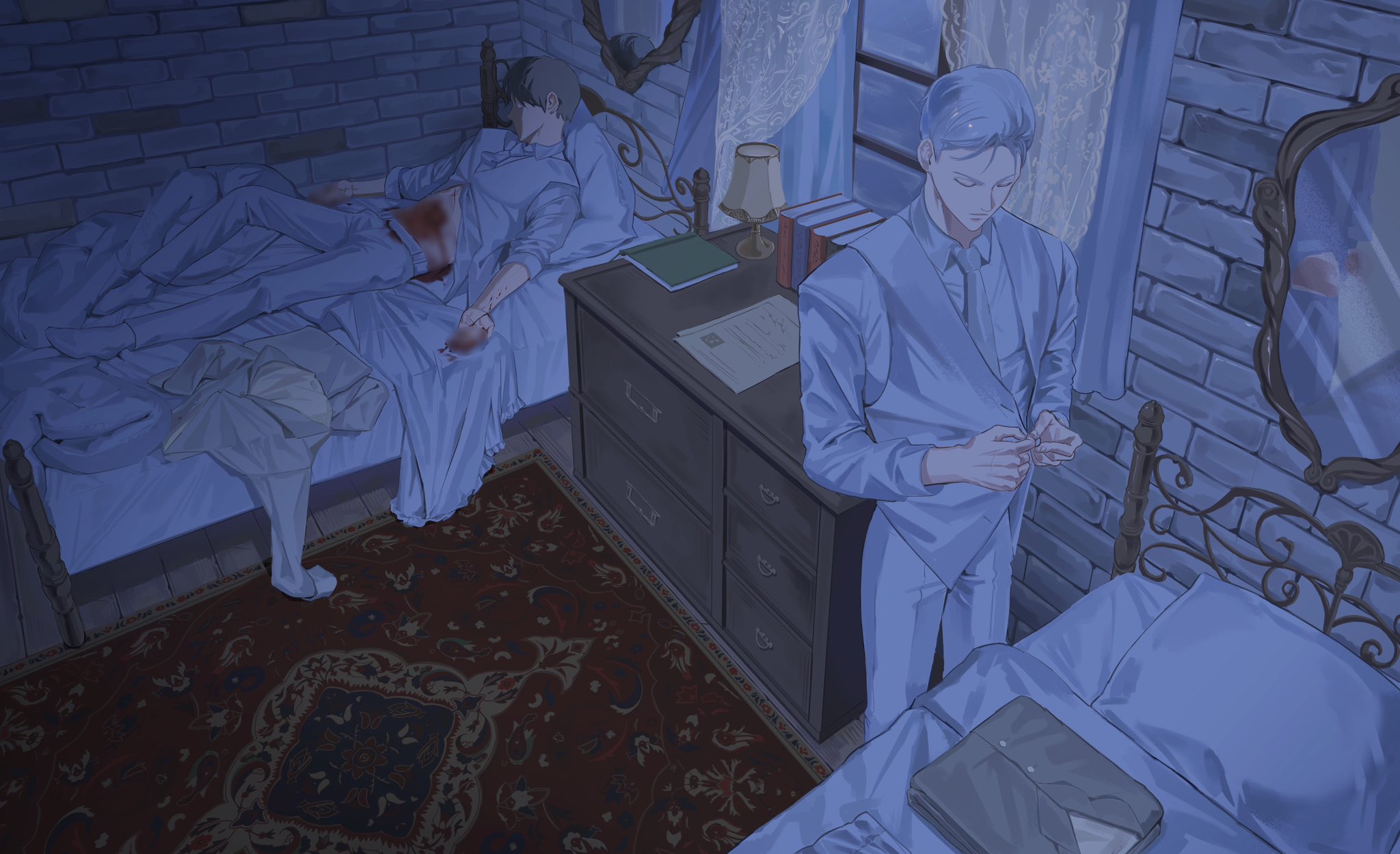أنهى لي جا-هيون الترتيب بسرعة، وغادر غرفة النوم في الوقت المحدد.