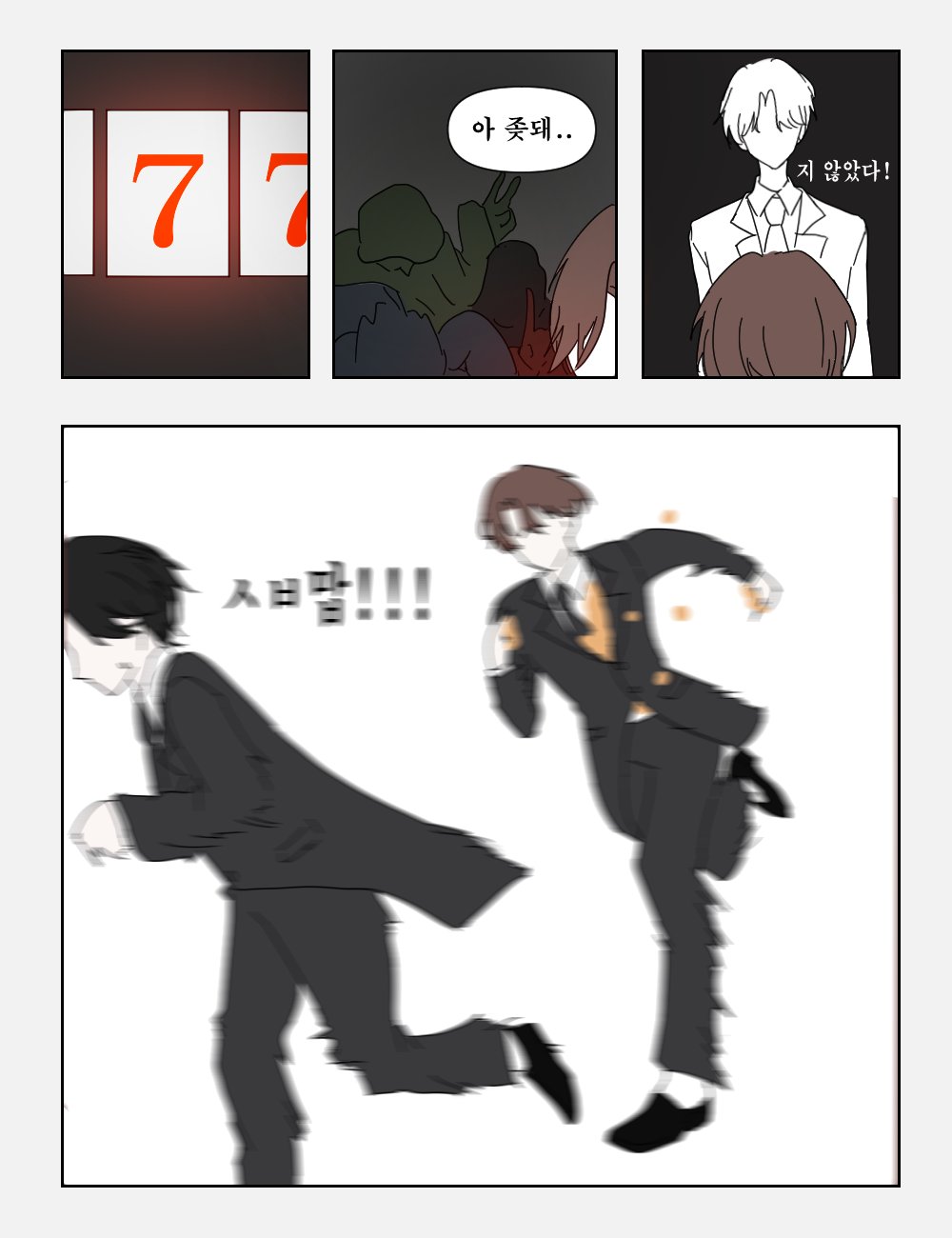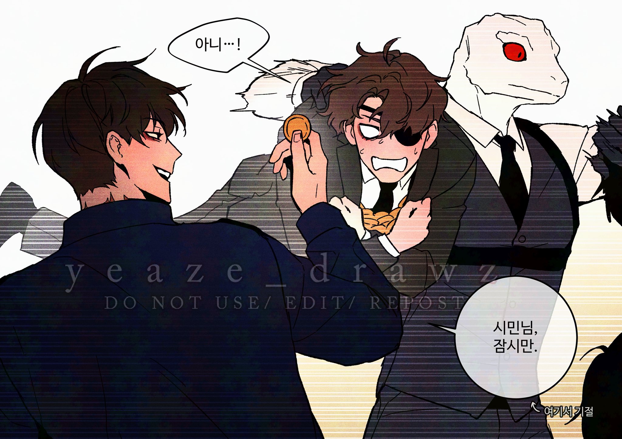 ~قفز العميل تشوي فوق الطاولة المحطمة واقترب بسرعة وسحب العملات من بايك سا-هيون.