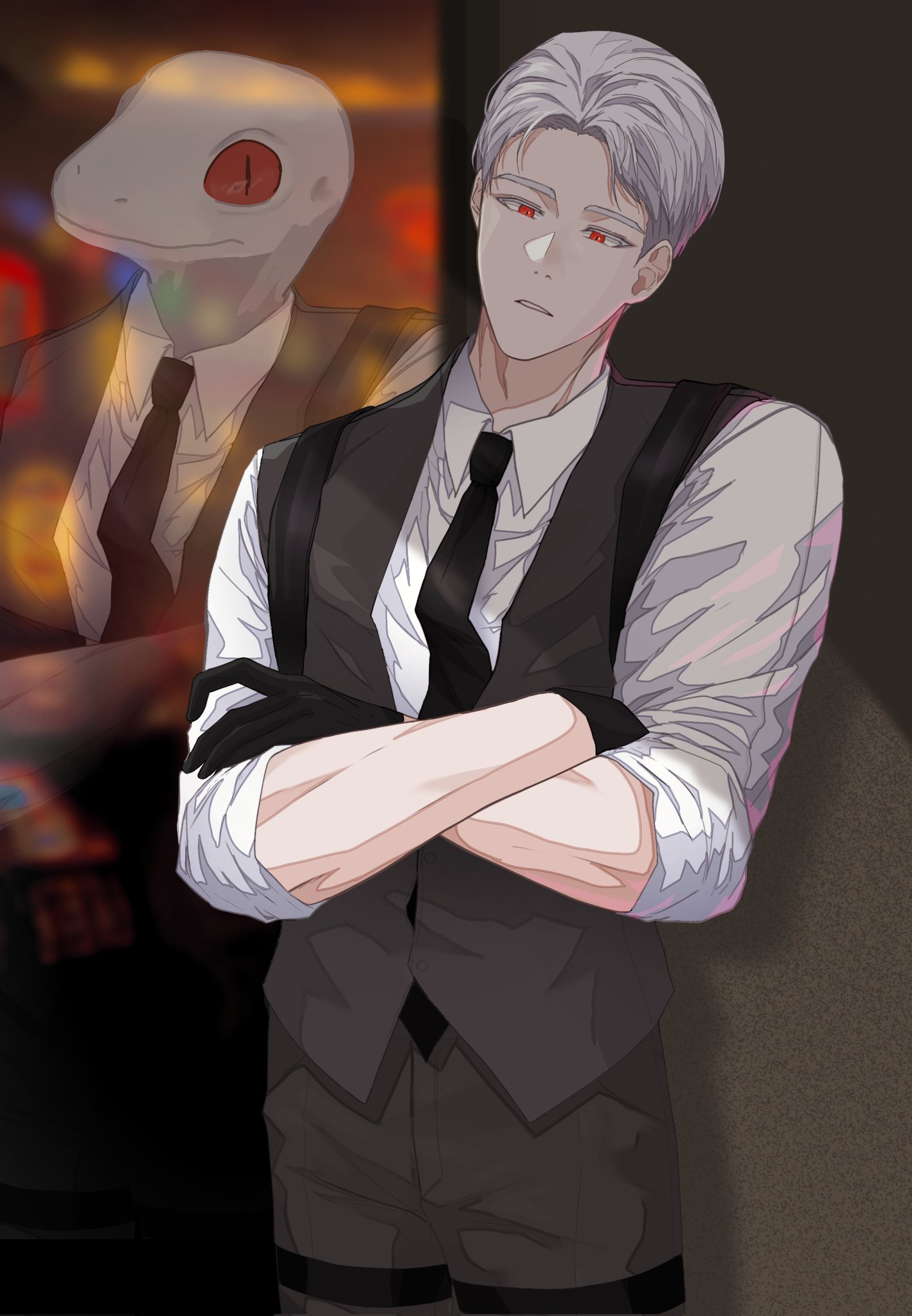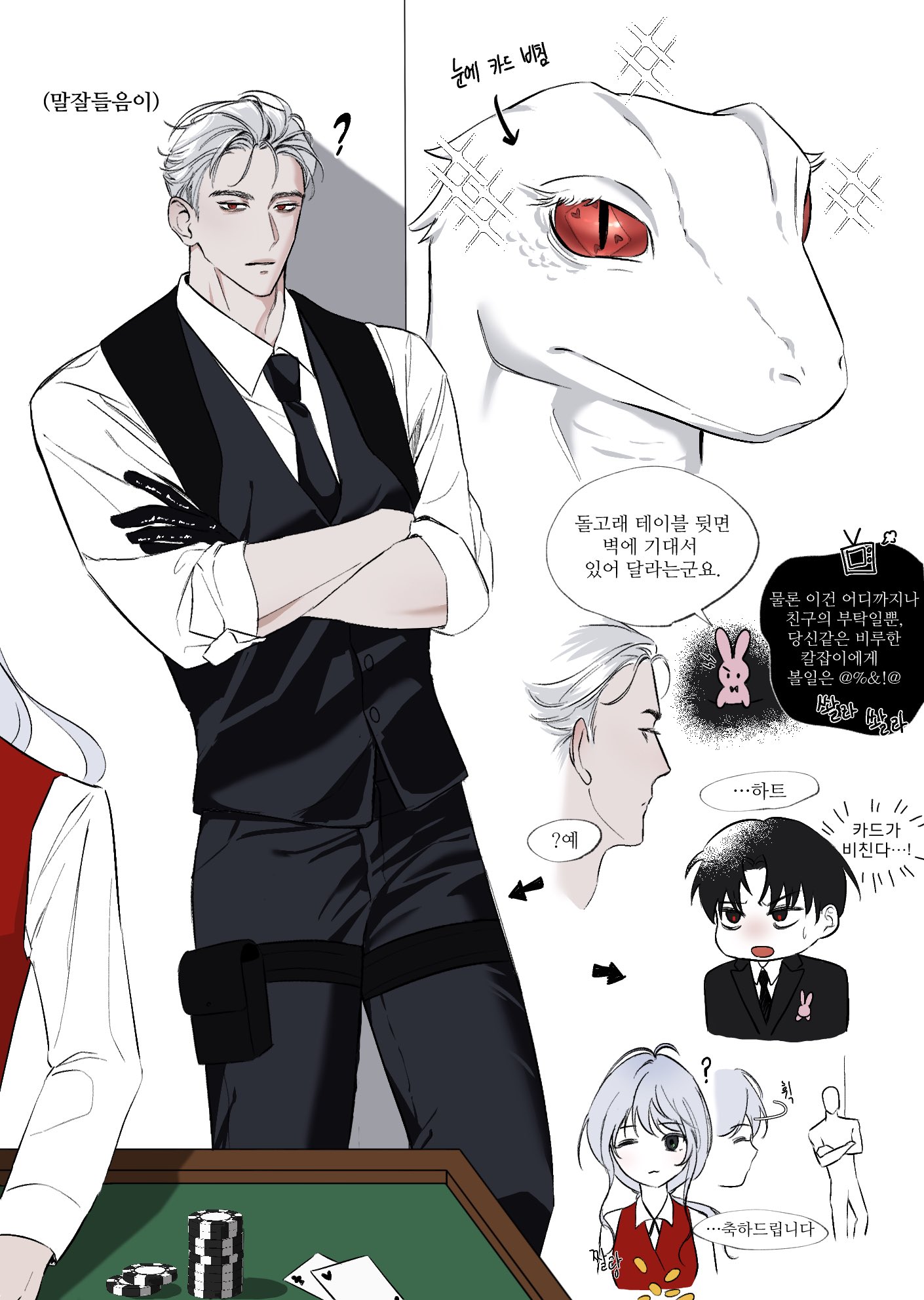 لكن الطاولة التي اختارها لم تكن للموزعة التي تحمل رأس نائبة القائد لي سونغ-هاي، بل لموزع آخر بوجه غير مألوف. (الموزع الجديد غير محدد جنسه)