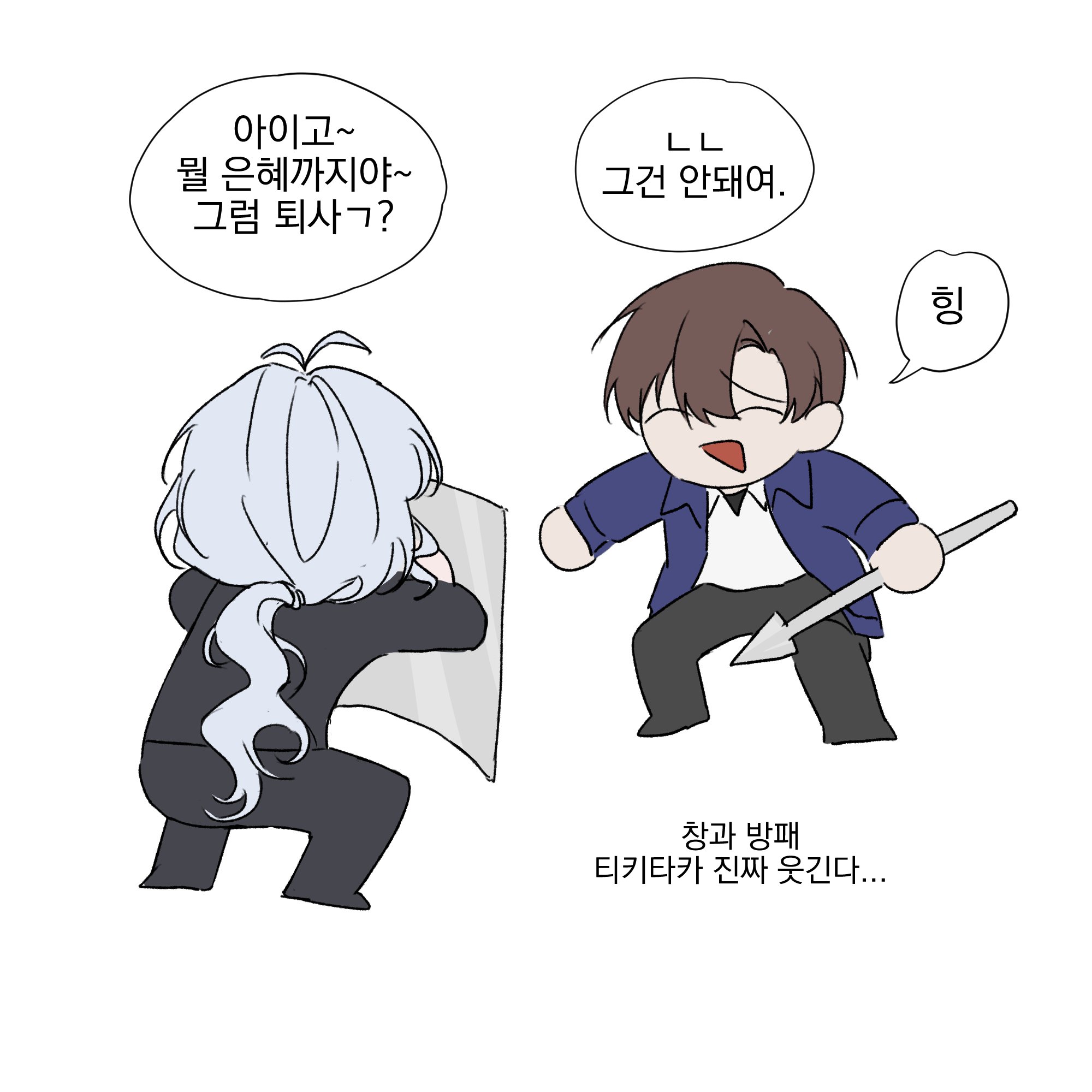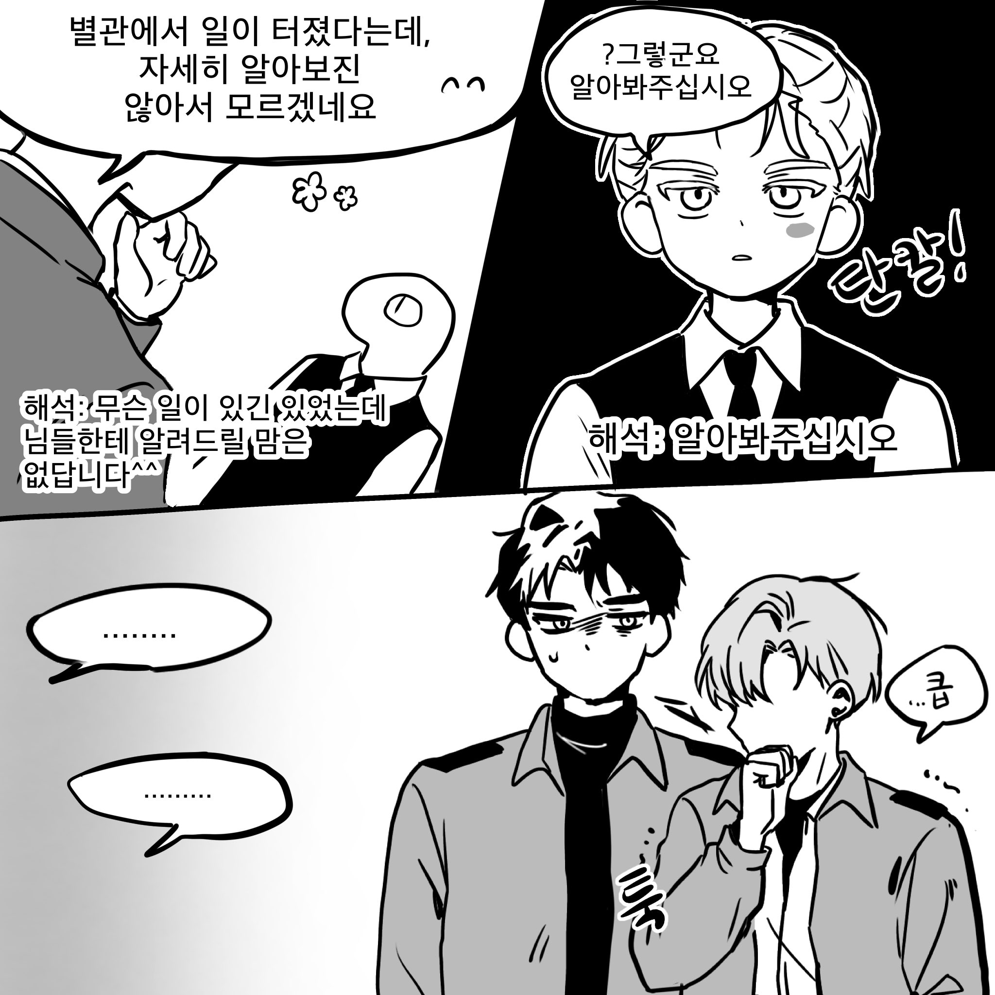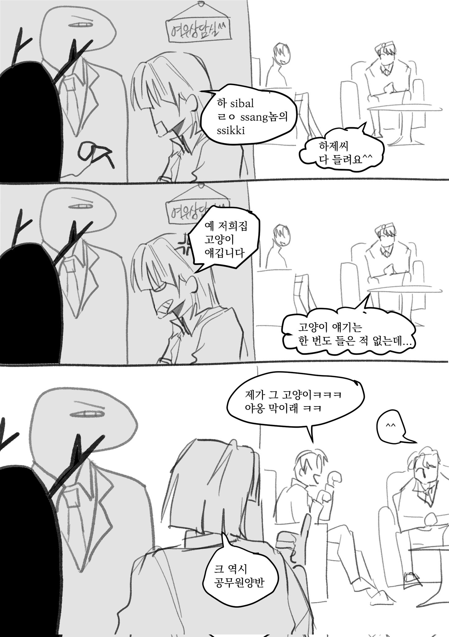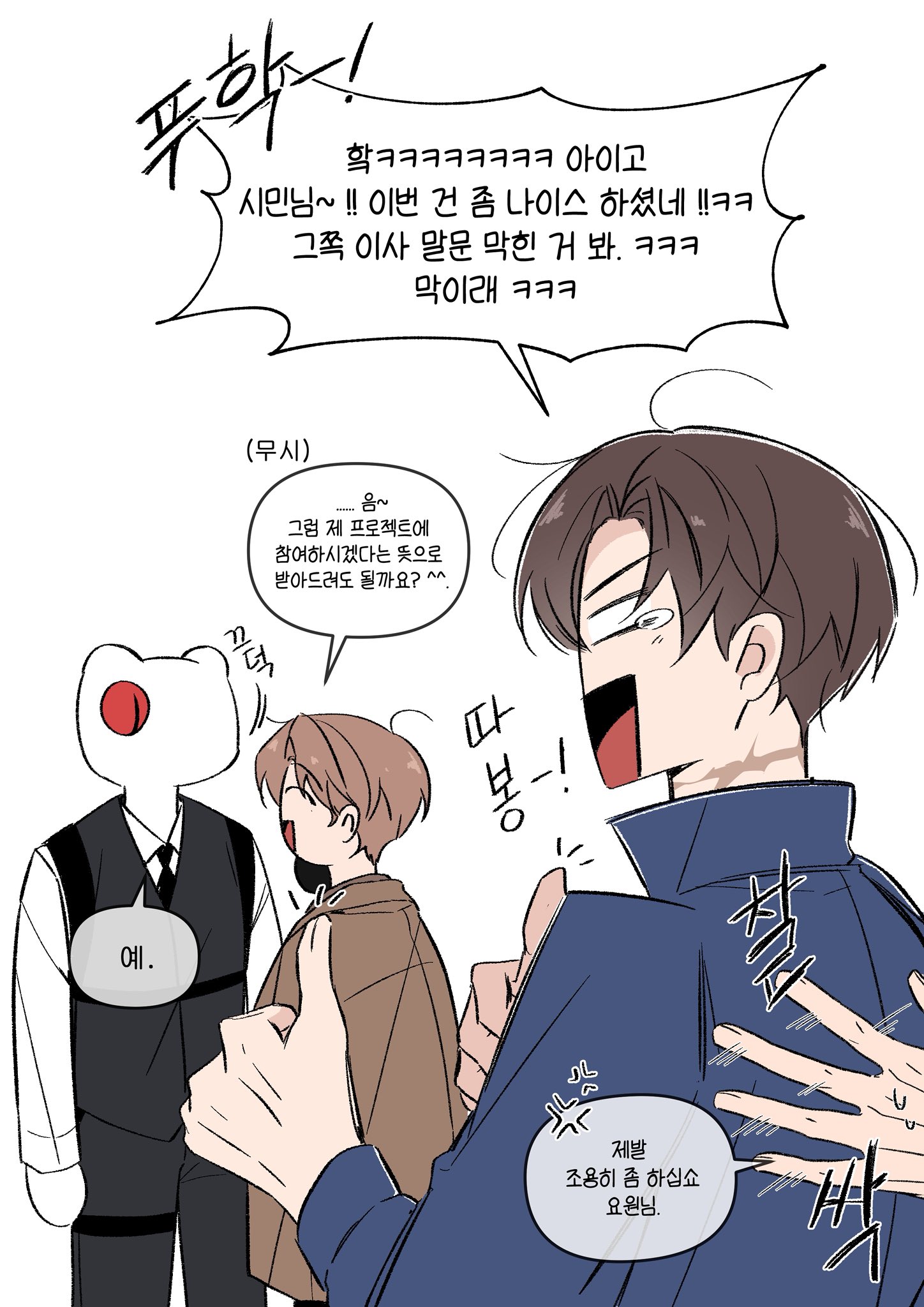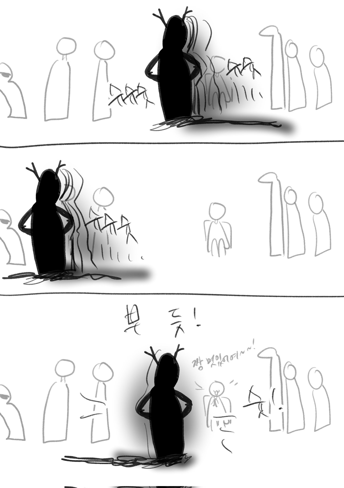 مع شرحي المدعوم بالإيماءات والكتابة، بدا على العملاء تعابير توحي بأنهم يرغبون في ضرب رأسي لو لم أكن وحشًا بقناع غاز مع قرون، ولكن عندما سمعوا أن السيدة غو يونغ-أون أخذتني وهربت، خفت حدة غضبهم تدريجيًا.