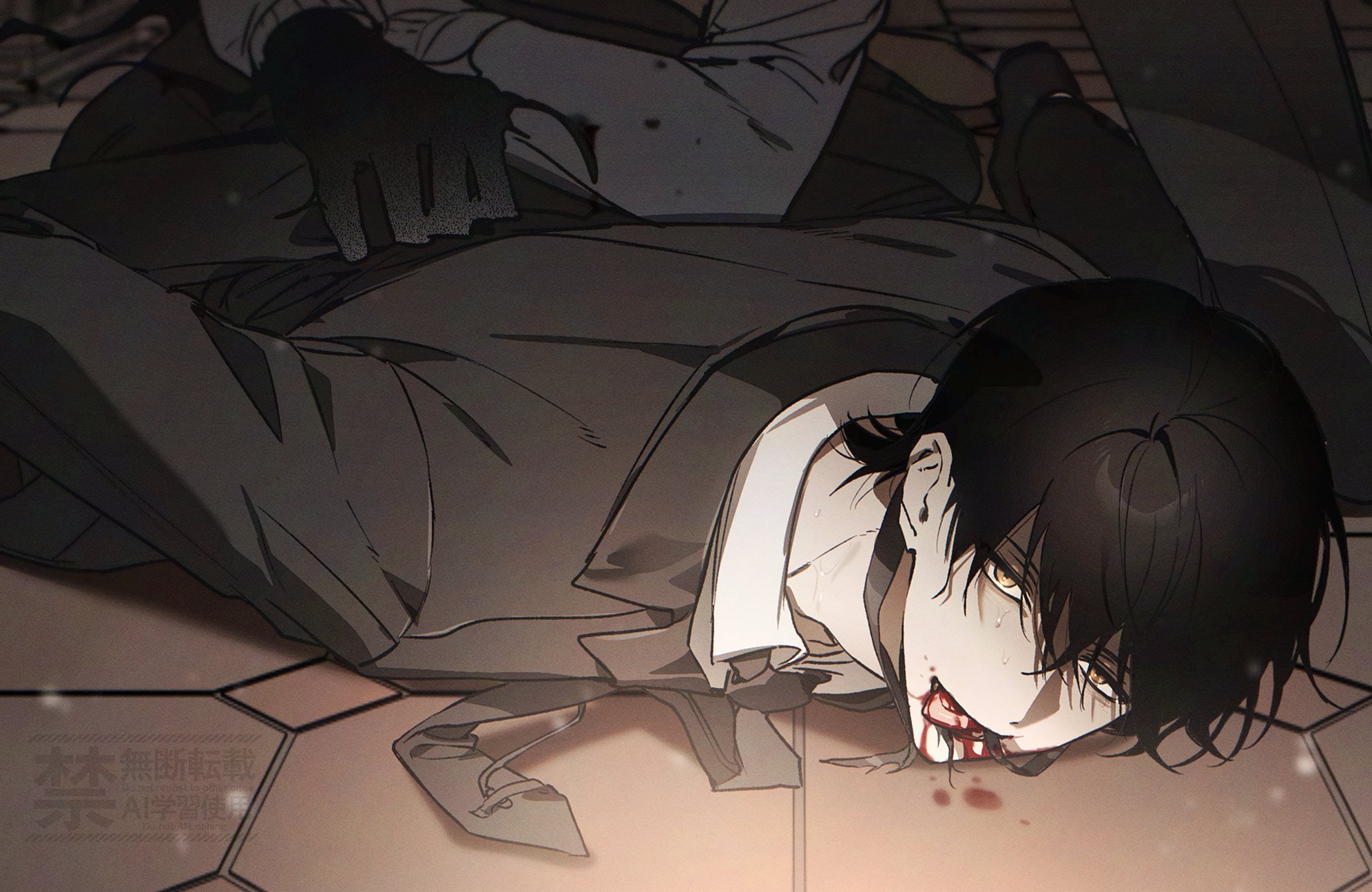 قبل أن يكمل قائد الفريق ذو قناع الذئب كلامه، انقضّت مخالب وحشية عليه فجأة، ضاغطة على رأسه. وغطّته مادة سوداء لزجة تشبه القطران.