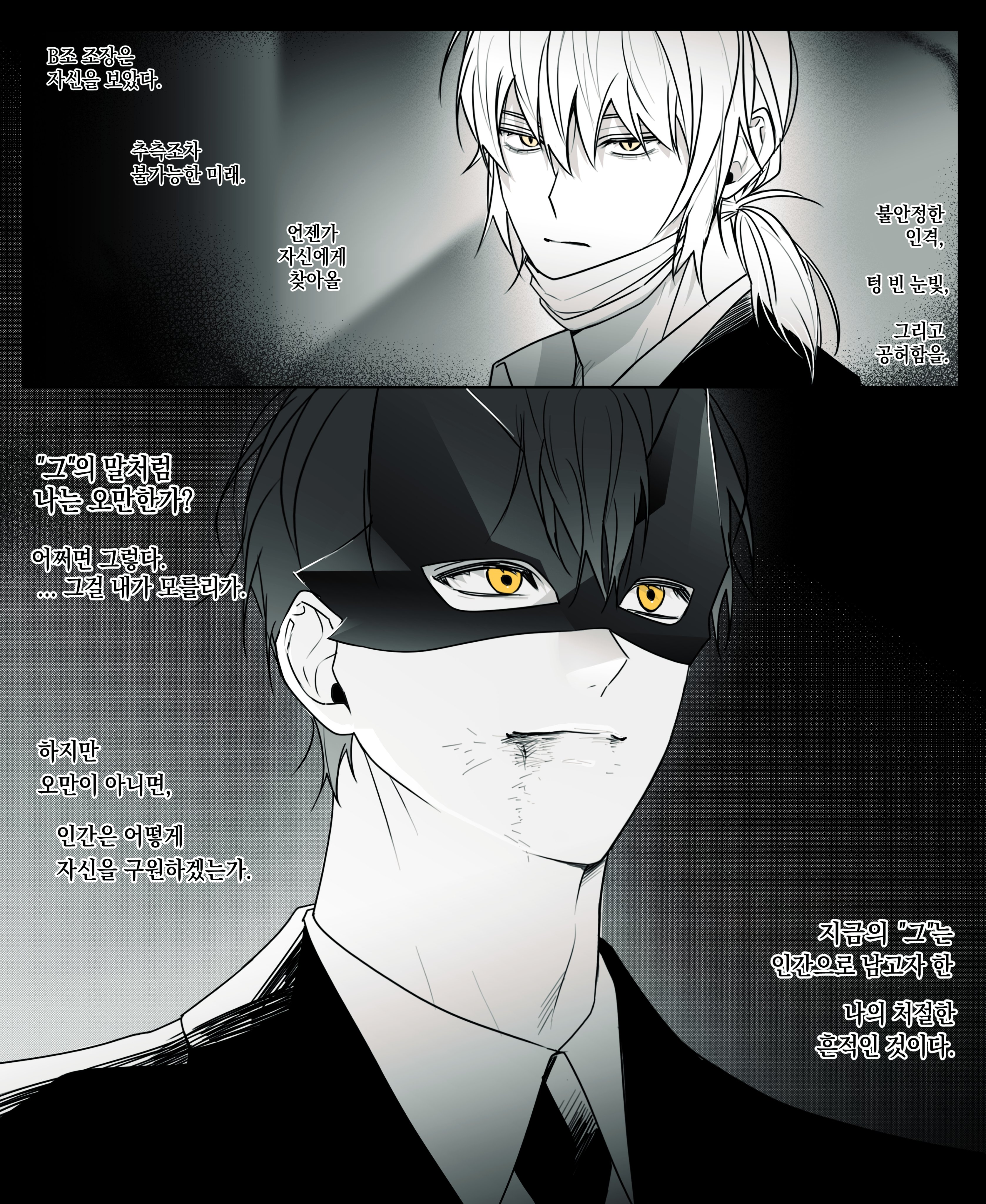 ~حاولت بكل ما أوتيت من خلايا دماغية أن أترجم هذا الفصل ليصبح مفهومًا ولو قليلًا 🤓✨ ونعم الفصل معقد وانتهى فعلا بهذه الجملة المبهمة، لكن دوري أحلل الفصل، أعذروني إذا كلامي طويل اعتبروه جزء من للفصل، فهذا الفصل حتى الناطقون الأصليون بالكورية وجدوا صعوبة في فهمه.