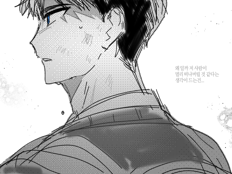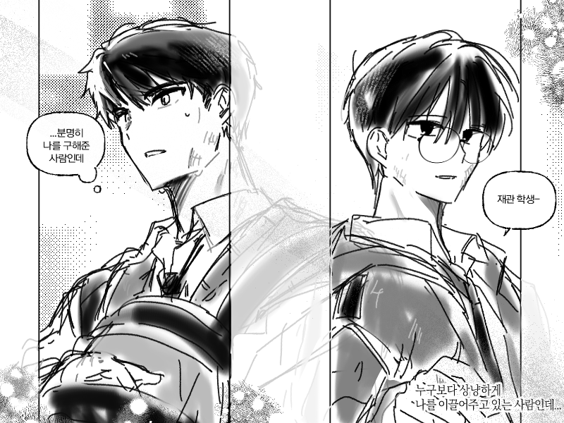 ثم نظرت إلى ريو جاي-غوان الذي كان يظهر وجهًا ثابتًا يقول 'لن أخرج وحدي أبدًا'، وكتمت تنهيدة.