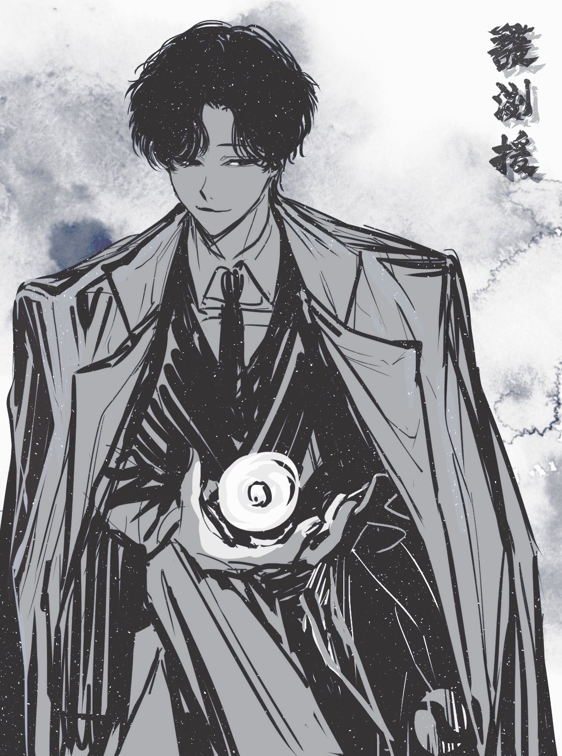 نظرت إلى الوراء، فرأيت ذلك الكيان الروحي يبتسم وهو ينظر إلى الباحث لي جا-هيون.