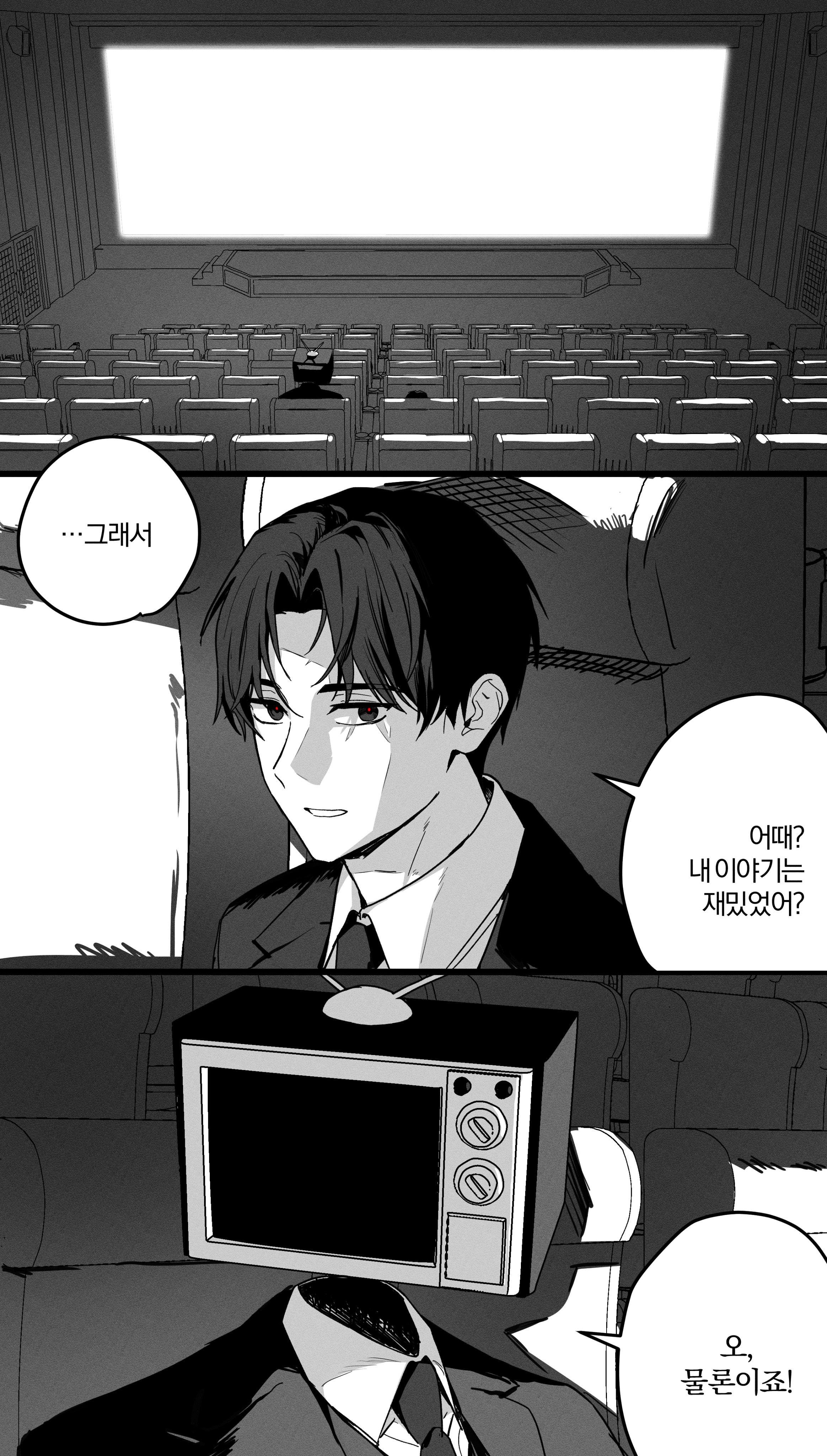 ~أما عن الفصل، جسد سول عاد بسبب الجرعة فلتحقيق أمنيته يجب أن يعود جسده أولا، سول كلم براون وبعدها العميلة هِجيوم (بدا المكان خارج الغشاء صاخبًا) صراحة خفت 🙂 صاخب بمعنى كلام أو صاخب بمعنى أن شيء ما كان يحدث لهم؟ (رؤسائي في نفس الفريق الذين ساعدوا الموظف الجديد الذي كان يظهر ويختفي فجأة. زملائي. قائد فريق الأمن. العميل 007 الذي التقيته عبر صفقة سلع مستعملة. وأيضاً...العميل الذي، رغم شكوكه المستمرة بي، استجاب لطلبي للإنقاذ. "بفضلكم، سأعود إلى للمنزل سالمًا من كارثة خارقة للطبيعة.") 😔 انها تمطر، (—عُد بسلام، أيها المواطن.) 🥹 أما براون أغربهم [هممم. إن جملة الخاتمة الرائعة هي دائماً معضلة كل فنان! ولكن بما أننا صديقان، فلا داعي للقلق بشأن مثل هذه الأمور التافهة...] متقبل الوداع؟؟ [لكل بث نهاية، وهذا ما يجعله ممتعاً ومنتظراً أكثر. أما مسألة متى ستعود لزيارة الاستوديو مرة أخرى لتروي لنا قصصاً ممتعة، فهذا يعتمد على رغبة الضيف نفسه.] رغبة الضيف ✨ كلما نعرف أن عودته للمنزل ليست النهاية ولن تكون عادية أصلا، و....الكاتب سيقرر كيف ستكون الأحداث القادمة. [هل استمتعت؟] براون أعاد الكلمات التي قالها سول لبراون في الفصلين 126-127 😭 ) القصص التي لا تزال مستمرة. ماذا سيحلُّ بمدينة سيغوانغ الخاصة الآن؟ هل سيتمكن العملاء من حل مشكلات هيئة إدارة الكوارث؟ ماذا سيحدث لفريق الأمن في هذه الأثناء؟ هل السيد جاي بخير؟ رئيس القسم مين-سونغ سيحتاج بالتأكيد إلى طريقة للتعافي من التلوث. أشعر وكأنه كان بإمكاني المساعدة بطريقة ما... وماذا حدث للعميل تشوغاي؟ هل تمكن طلاب مدرسة سيغوانغ الثانوية، والمعلمون، والعملاء من الهروب بأمان؟ ...هل لا يزال هُو يو-وون يقدم الاستشارات؟ وهل ما زلت أنا موجودًا هناك؟) نفس سؤال سول-يوم هل سول الشرنقة ما زال في غرفة الاستشارات؟ هذا حرفيا ايرور لأن كيف😵 اثنين سول؟ واذا تعالج اللي بالشرنقة شو بيصير، واللي عاد للمنزل هو اي نسخة... ومين الاصل 🗿 كنت طول الوقت اتكلم فصحى بس فجأة المهم، (أريد معرفة القصة التالية. ينتابني الفضول. أشتاق إليهم.) ☹️ بكاء، كملاحظة سول هنا قال 'أريد أن أراهم' بس المصطلح الكوري يعني الاشتياق (من مصادر موثوقة 🤫) و....عاد فعلا إلى عالمه (وفي الأعلى، رأيتُ ميدالية دمية أرنب 'الصديق الجيد' التي حصلتُ عليها كجائزة، وهي لا تزال مغلفة.) عرفنا أنه عاد لنفس اليوم الذي انتقل فيه للعالم الآخر، ([أخي الصغير: يا كيم سول-يوم، أمي تقول لك أن تأتي إلى المنزل في عطلة نهاية الأسبوع] أبي، أمي، أخي، أصدقائي. الأشخاص الذين اشتقتُ إليهم كانوا جميعاً هناك. السجلات التي تخبرني من أنا. آثار حياة كيم سول-يوم، أشياء مألوفة وتبعث على الحنين. لكن آثار الأشخاص الذين كنتُ أتواصل معهم بشكل اعتيادي في السنوات الأخيرة لم تكن موجودة، لقد عدتُ إلى عالمي.) لا أنا لا أبكي 😞😞 أنا فقط أغرق في دموعي، وحتى النهاية (دون أن أنظر للخلف.) و لم ينظر كيم سول-يوم للخلف أبدًا.