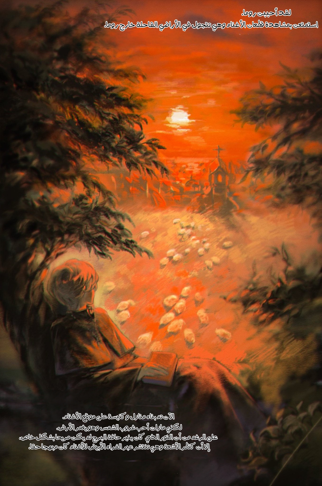 "...لهذا السبب لم أحطم بيثيا دلفي. لكن غابرييل فعل. لقد أحب روما، لكنه كرهها أكثر، ولهذا مبررات مفهومة. كان غابرييل يحدق دائماً في الأفق بعينين متقدتين، مستنشقاً غبار الرمل القاحل بدلاً من النظر إلى القطيع كما أفعل أنا. بالنسبة لغابرييل، كانت الأراضي الخلاء قرب روما والكولوسيوم ساحة معركة للهمجية تفيض برائحة الدم؛ وقوس قسطنطين كان نصر الرومان الذين نسوا الإنسانية؛ والفاتيكان كان مكاناً للحب والكراهية. أخبرني غابرييل ذات مرة أنه لم يعد يريد البقاء في هذه المدينة الرهيبة حيث بقيت آثار 'لعنة الذاكرة' بشكل فوضوي. لم يكن الكولوسيوم في هذه المدينة؛ بل كانت هذه المدينة هي الكولوسيوم العملاق نفسه."