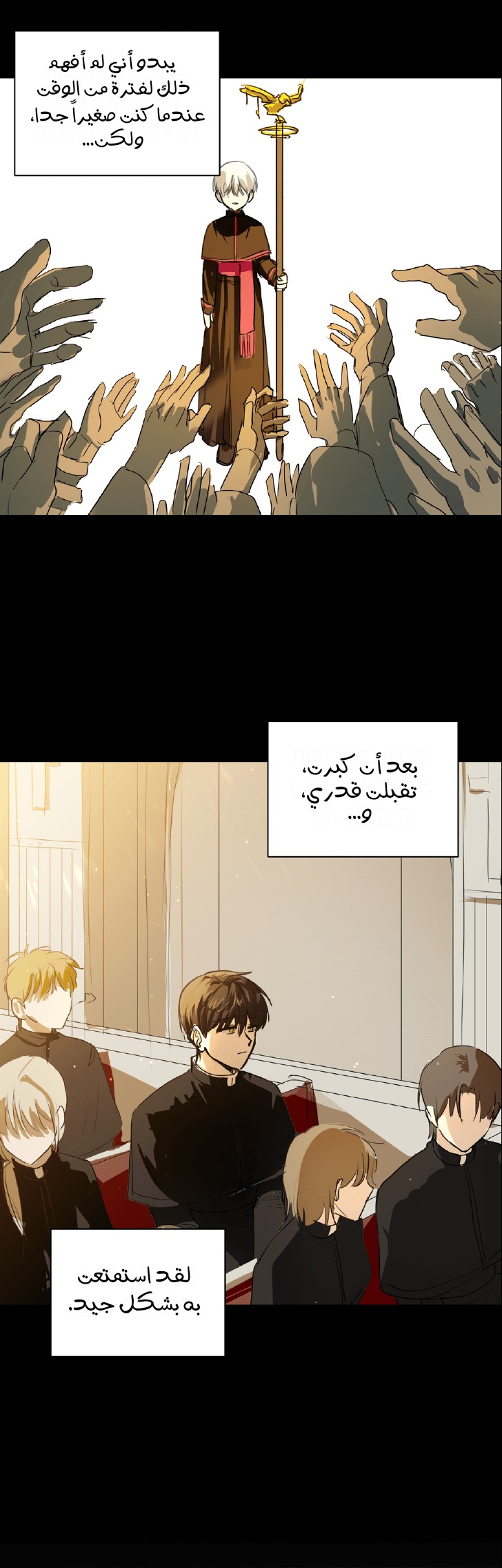 "أنا آسف. كان لدي شعور سيئ تجاه النبوءة ، لذا فعلتُ ما فعلتُ. اتضح أنه بغض النظر عن المسار الذي اخترته، كان مقدراً لك لقاء ماتيو. فعلتُ ذلك لأنني لم أعتقد أن أي شيء خطير سيحدث حتى لو دخلت؛ لو كنتُ قد تصورتُ مستقبلاً تواجه فيه محنة كبرى في القصر، لما طلبتُ منك الدخول."