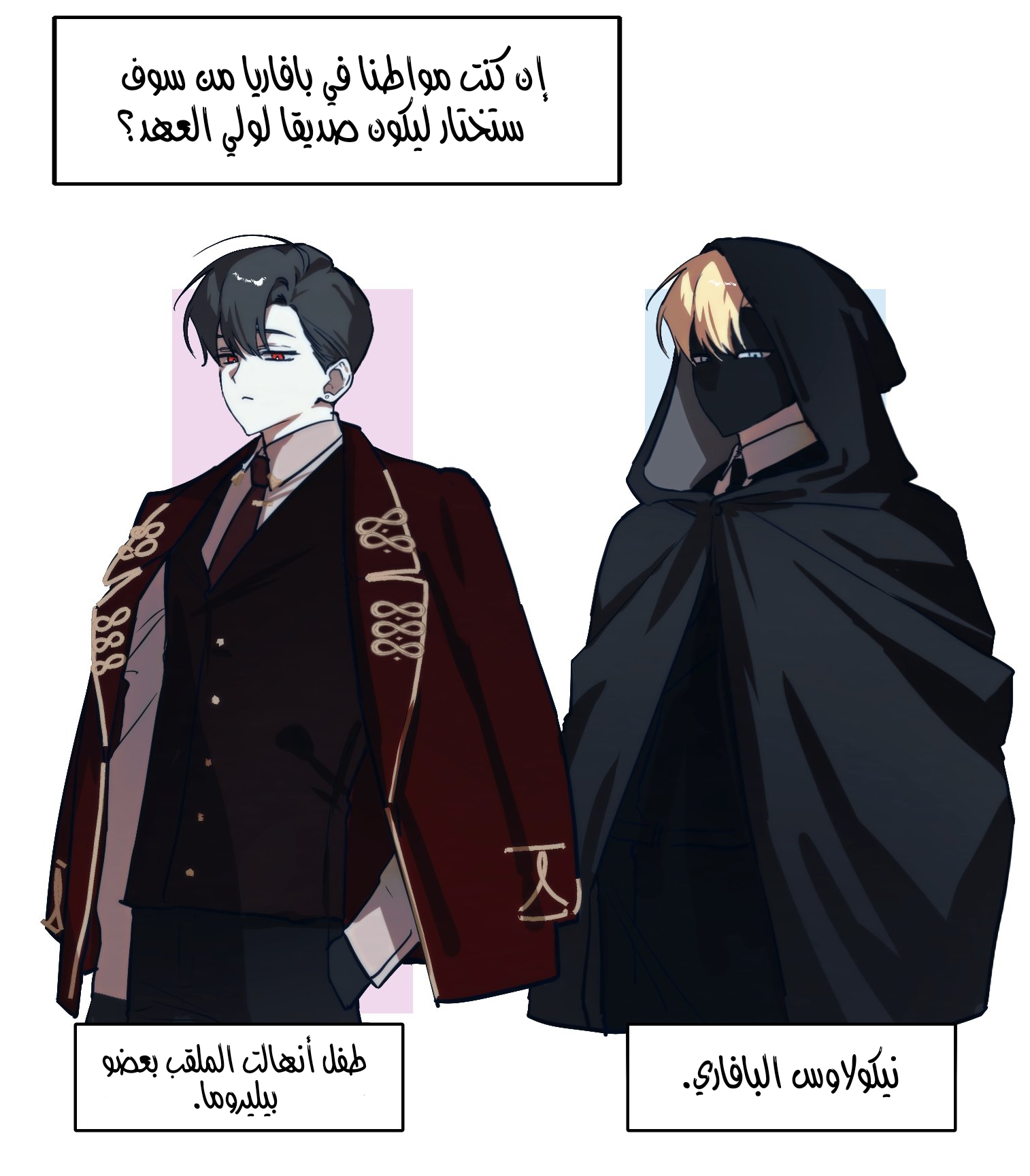 «بالطبع، هذا لا يعني أنني كنتُ واثقًا من كلام وليّ العهد. فحتى أرى هويتك الحقيقية بعينيّ، أي حتى يوم أمس، لم أكن لأصدّق هذه القصة، مهما كان من يرويها لي.»