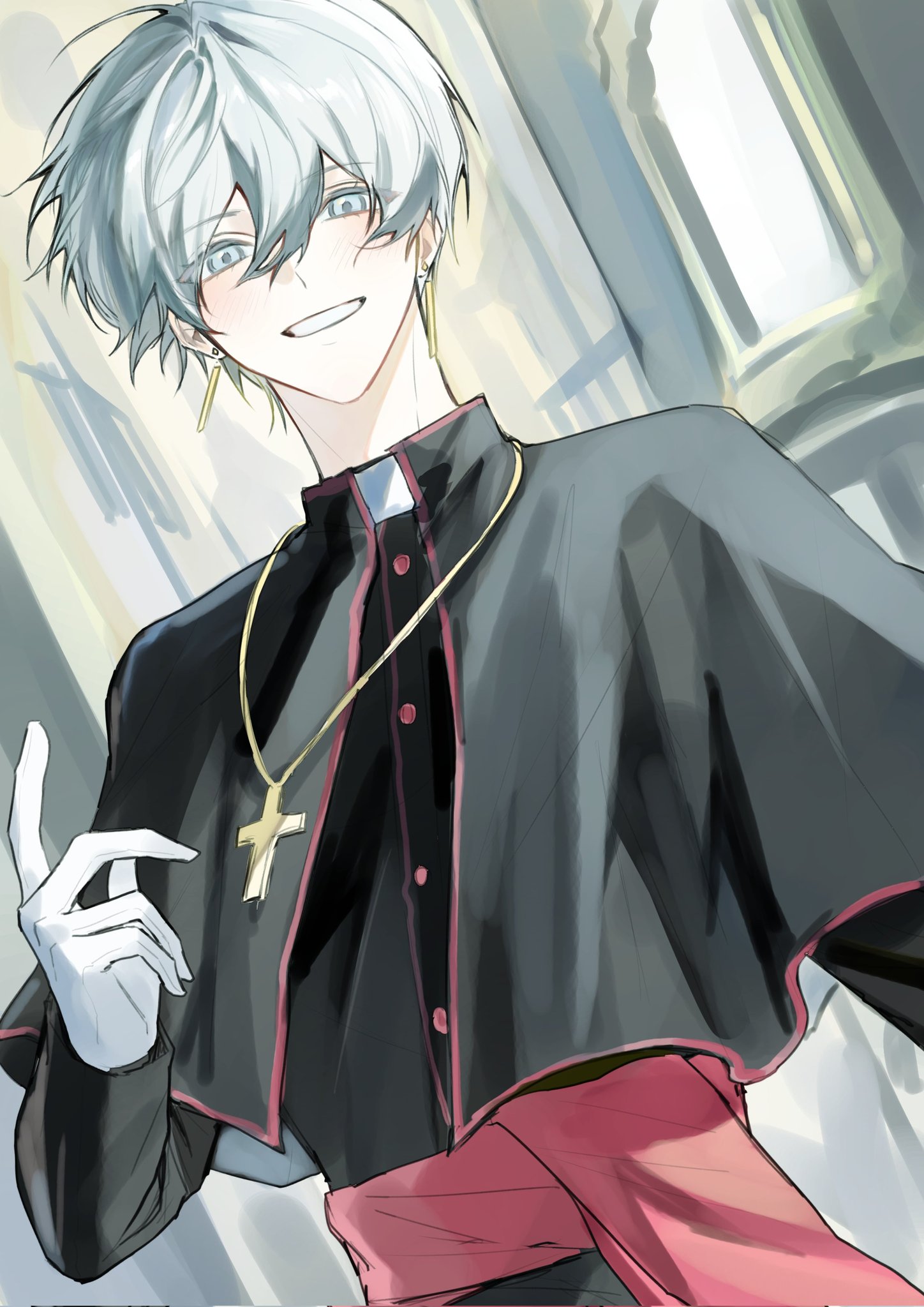 رفع رجل يرتدي أردية كهنوتية يده قليلًا.