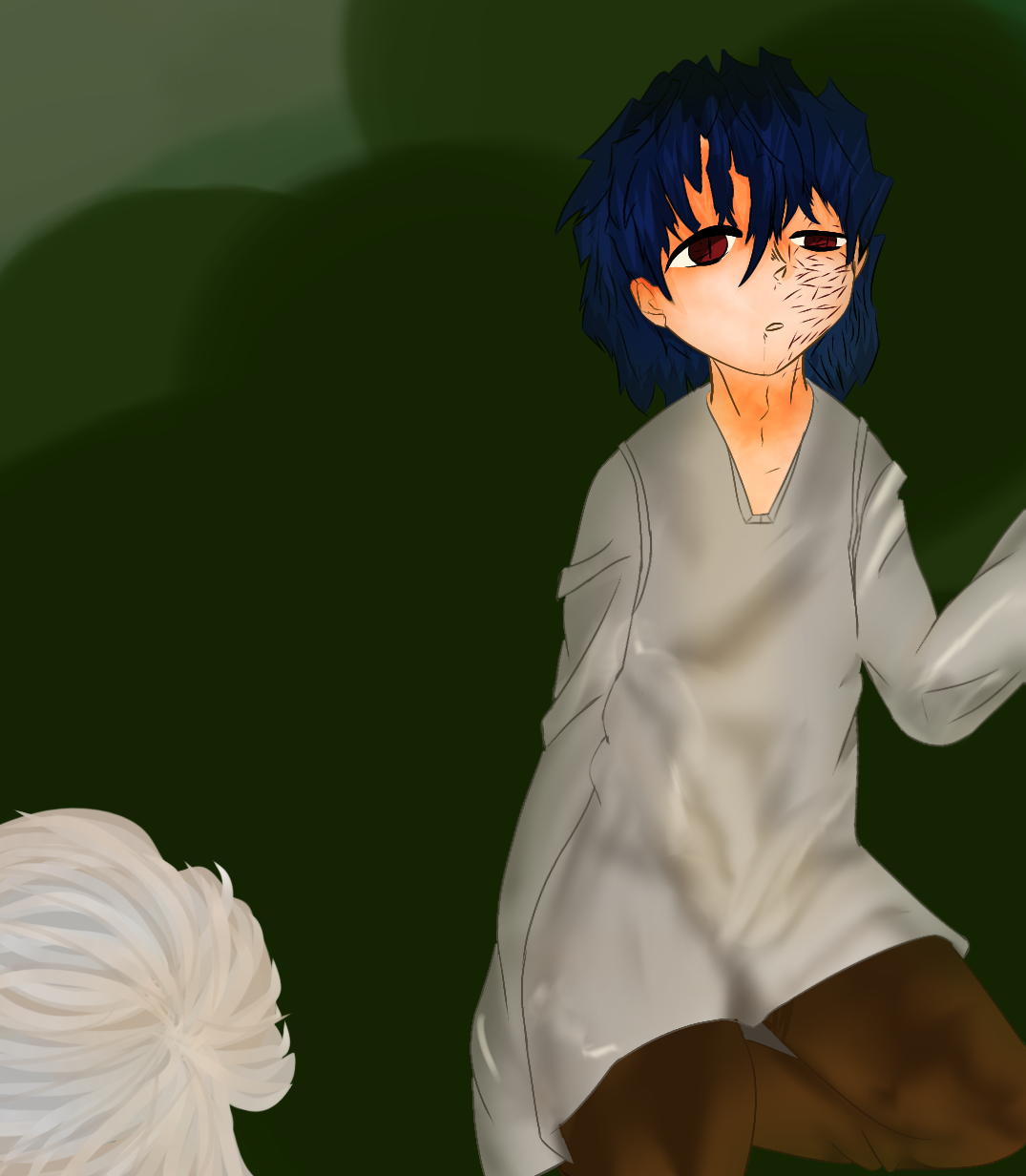 *تنهد... لا يهم—* الأفكار التي كانت تتشكل في ذهن الصبي... أفكار بدت وكأنها تتردد بلا صوت، انقطعت فجأة.