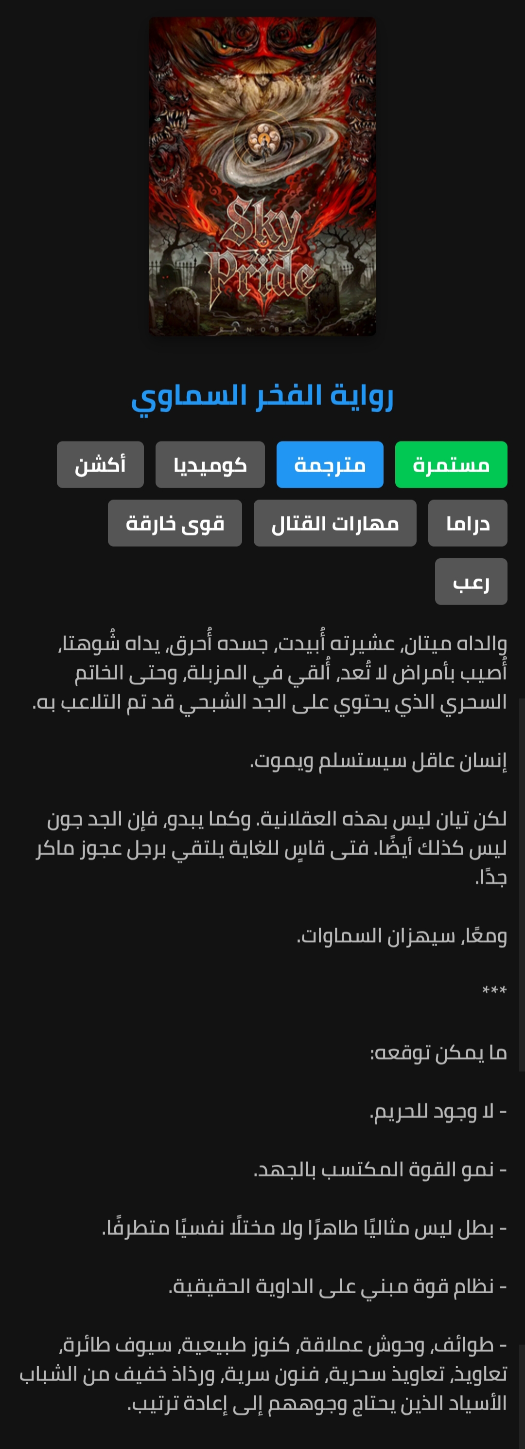 ساورون: أتمنا أن تقوموا بقراءة أجدد الروايات التي قمت بإضافتها للموقع باسم: الفخر السماوي