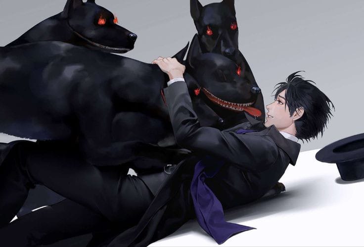 بدا وكأنه كلب صيد. كان جسده كله مغطى بفراء أسود قصير، وكانت تجاويف عينيه كرتين من لهيب أحمر داكن مشتعل. إمتدت أطراف فمه إلى مؤخرة رأسه. من الواضح أنه كان موجود هناك في شكله الجسدي، لكنه أعطى شعورًا وهميًا بدا سريالي.
