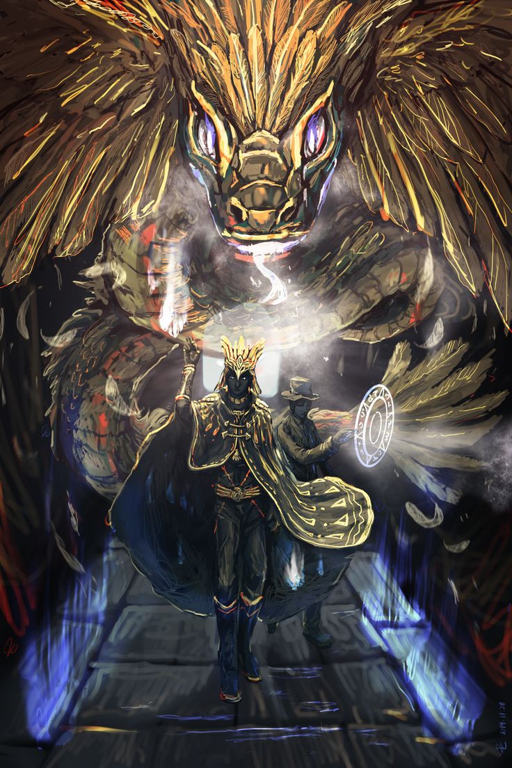 كان هذا هو “الكويتزالكواتل”، الأفعى التي تم التحدث عنها في أسطورة القارة الجنوبية. كانت تجاويف عينه تحترق بلهب أبيض شاحب مع انتشار زوج من الأجنحة السميكة المبالغ فيها من ظهره.
