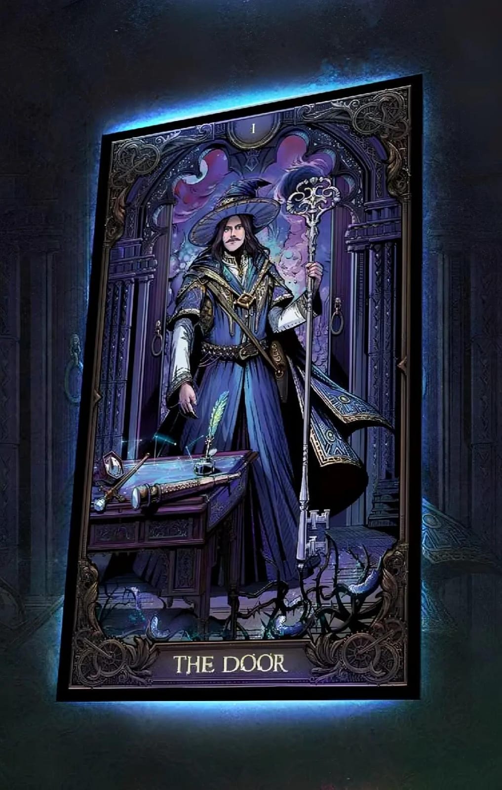 ثم رفعت يدها وذذبت بطاقة تاروت من الجانب الأخر للغرفة، واحدة تستخدم للعرافة.