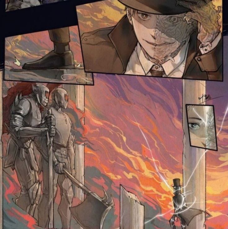 أومأ كولين صائد الشيطان السابق برأسه قليلاً دون أي اعتراضات. خلف لوفيا، ظهرت شخصية وهمية مغطاة بدرع فضي بعيون حمراء داكنة ويبلغ ارتفاعها عدة أمتار.