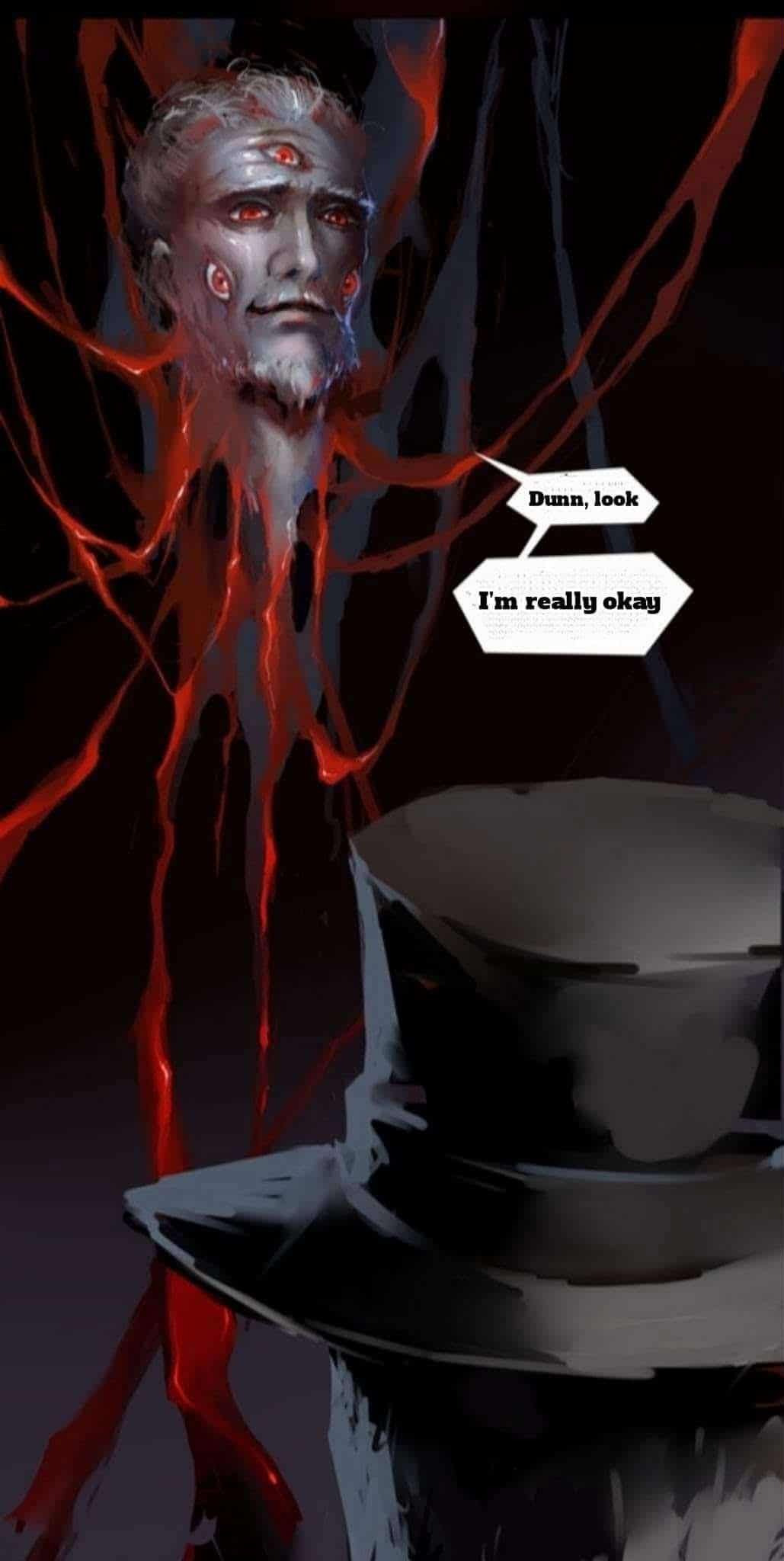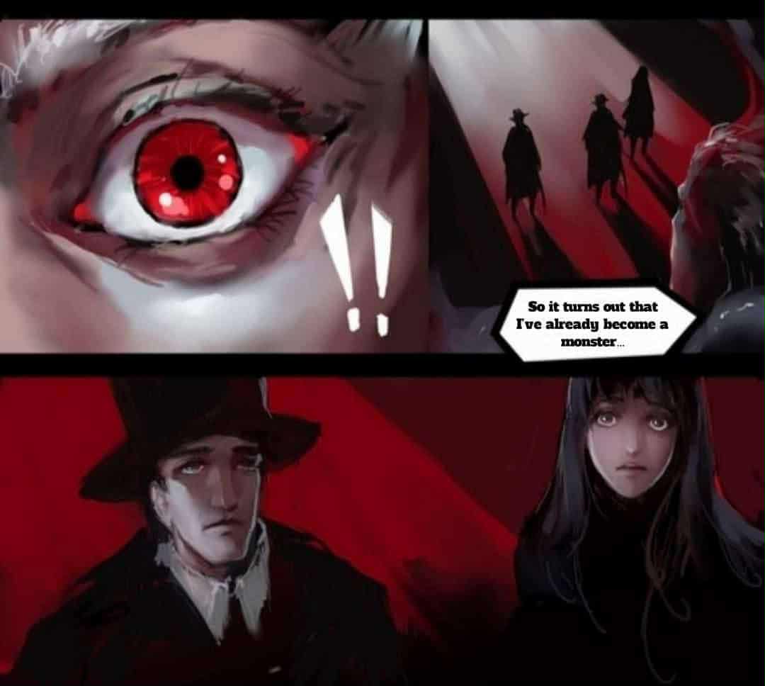 في الصمت الذي لا يوصف، نظرت عيونه الستة نحو دون، وقال بابتسامة مريرة، “لقد اتضح . اتضح أنني أصبحت بالفعل وحشًا…”