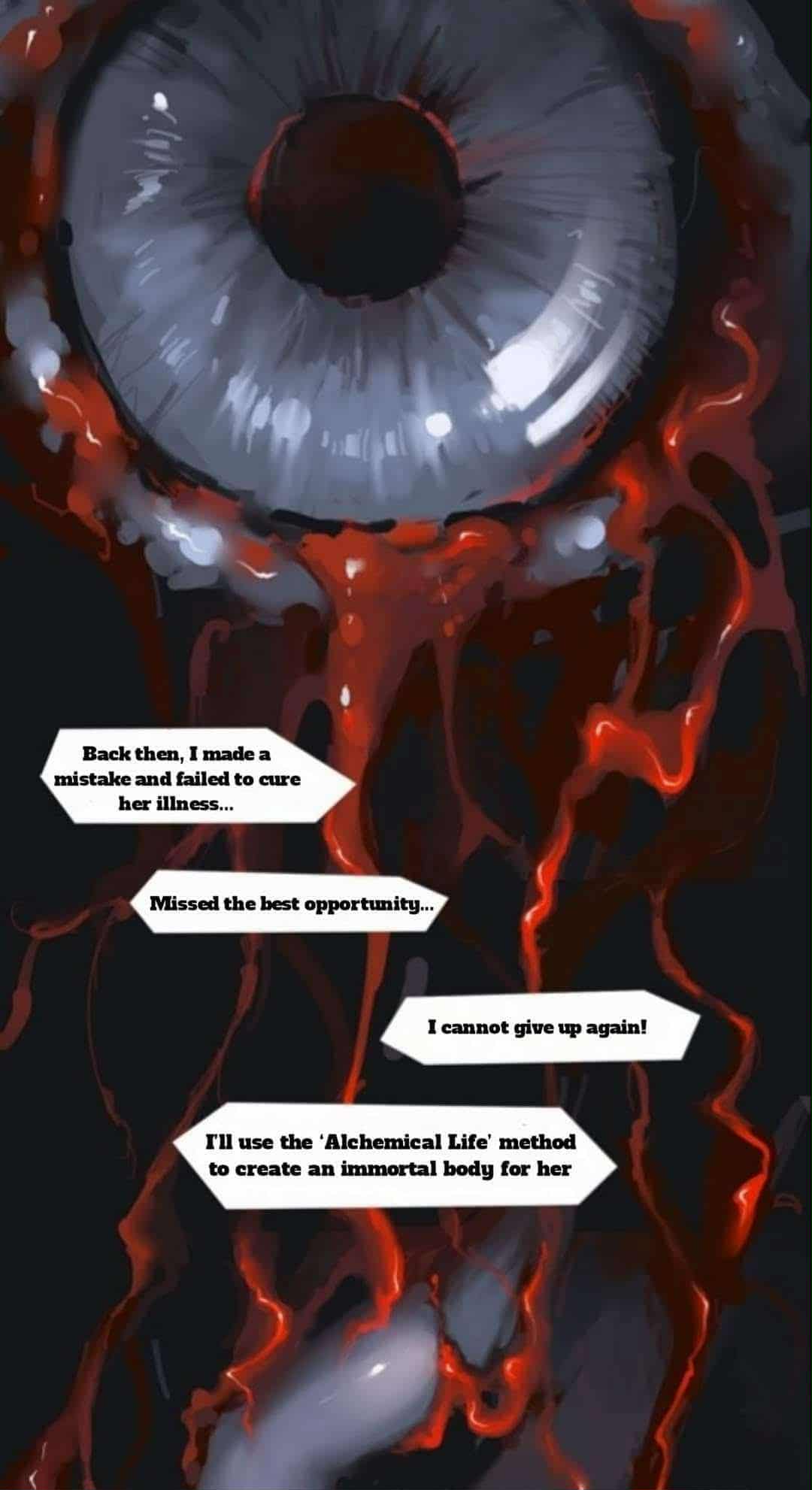 “سأستخدم طريقة” الحياة الخيميائية “لإنشاء جسد خالد لها. دون، قد لا تعرف ذلك، لكن متجاوزي التسلسل 4 من كنيسة الأم الأرض جيدين في هذا. التسلسل المقابل في مسار العلّامة بالكاد يمكنهم أن يفعلوا ذلك أيضًا، نعم، سأكمله بمساعدة الإله.”