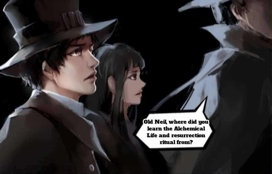 “العجوز نيل، من أين تعلمت طقوس الحياة الخيميائية والإحياء؟”