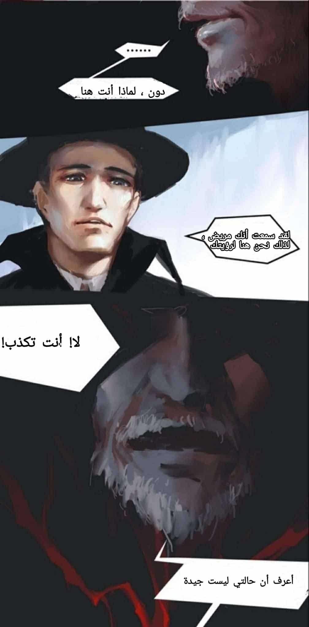 في الرؤية الضبابية لكلاين ورويال، أخفض دون رأسه قبل رفعه مرة أخرى. “العجوز نيل، أنت تسيء فهم شيء ما. نحن هنا لزيارتك. أنت زميلنا في الفريق. أنت مريض، ولست جيدًا. نحن بحاجة بالتأكيد لزيارتك. افتح الباب. دعنا نراك حتى نكون على يقين. إذا كنت بخير حقًا، فسنعود على الفور. كما تعلم، هناك العديد من المهام مؤخرًا. علينا مراقبة المصح بينما نعتني بالعديد من الحوادث المفاجئة الأخرى. “