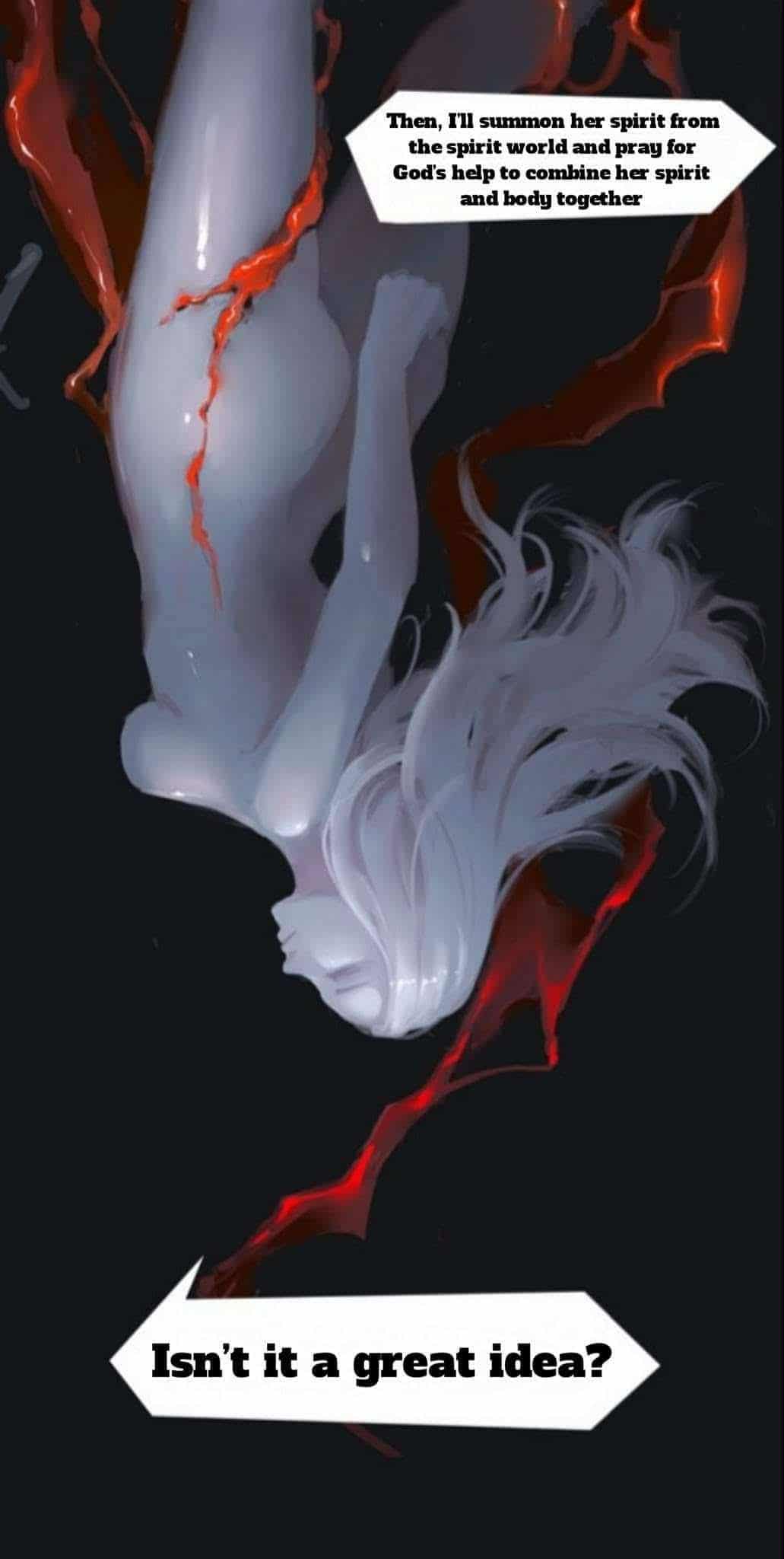 “ثم، سأستدعي روحها من عالم الأرواح وأصلي من أجل مساعدة الإله على الجمع بين روحها وجسدها معًا.”