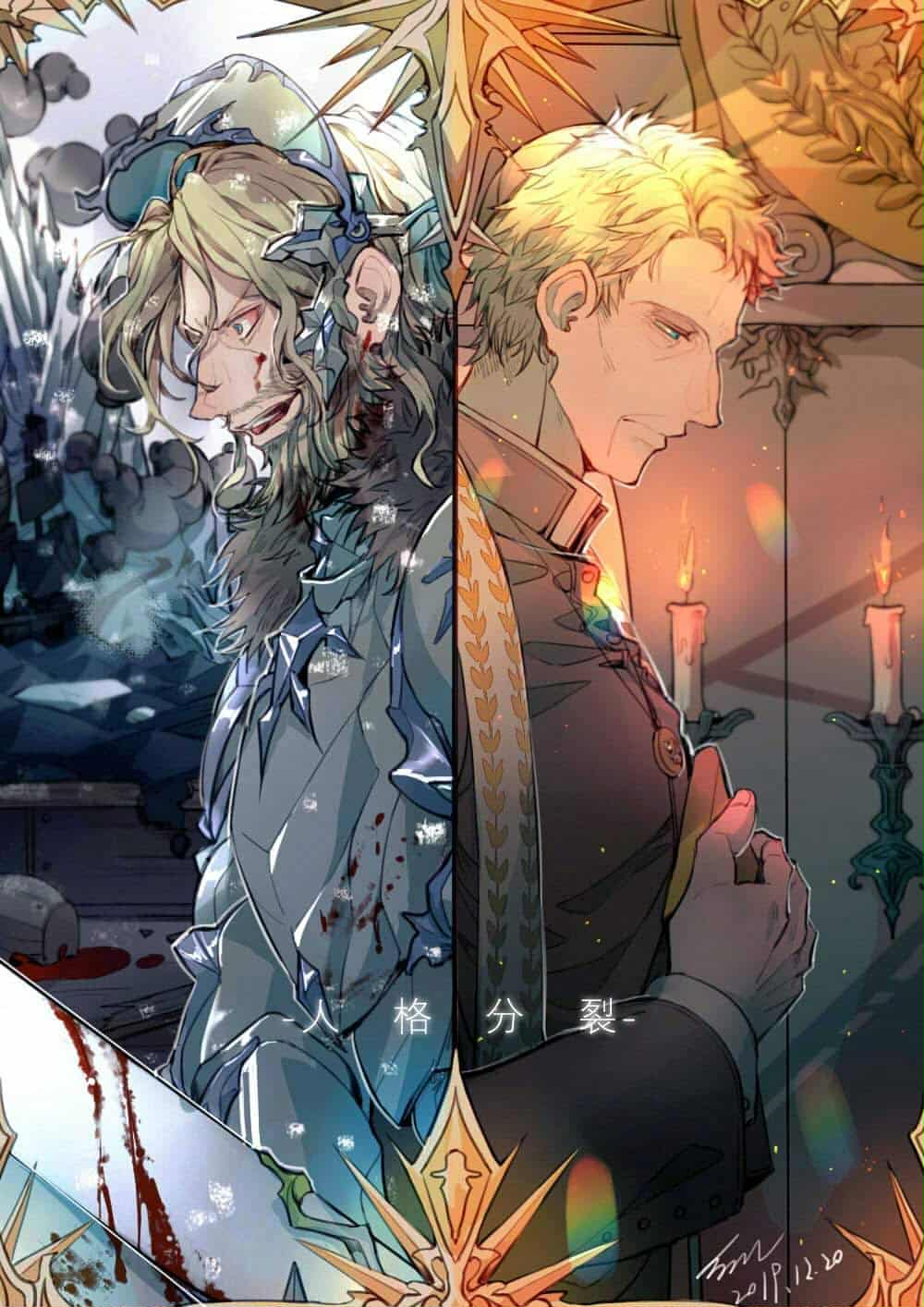 لكن هذا لم يؤثر على رشاقة الأسقف “العملاق”. لقد أطلق هديرًا منخفضًا، ومثل القطار البخاري الذي تسارع أخيرًا إلى أعلى سرعته، قام بالإنقضاض من خلال اللهب وظهر أمام كلاين.