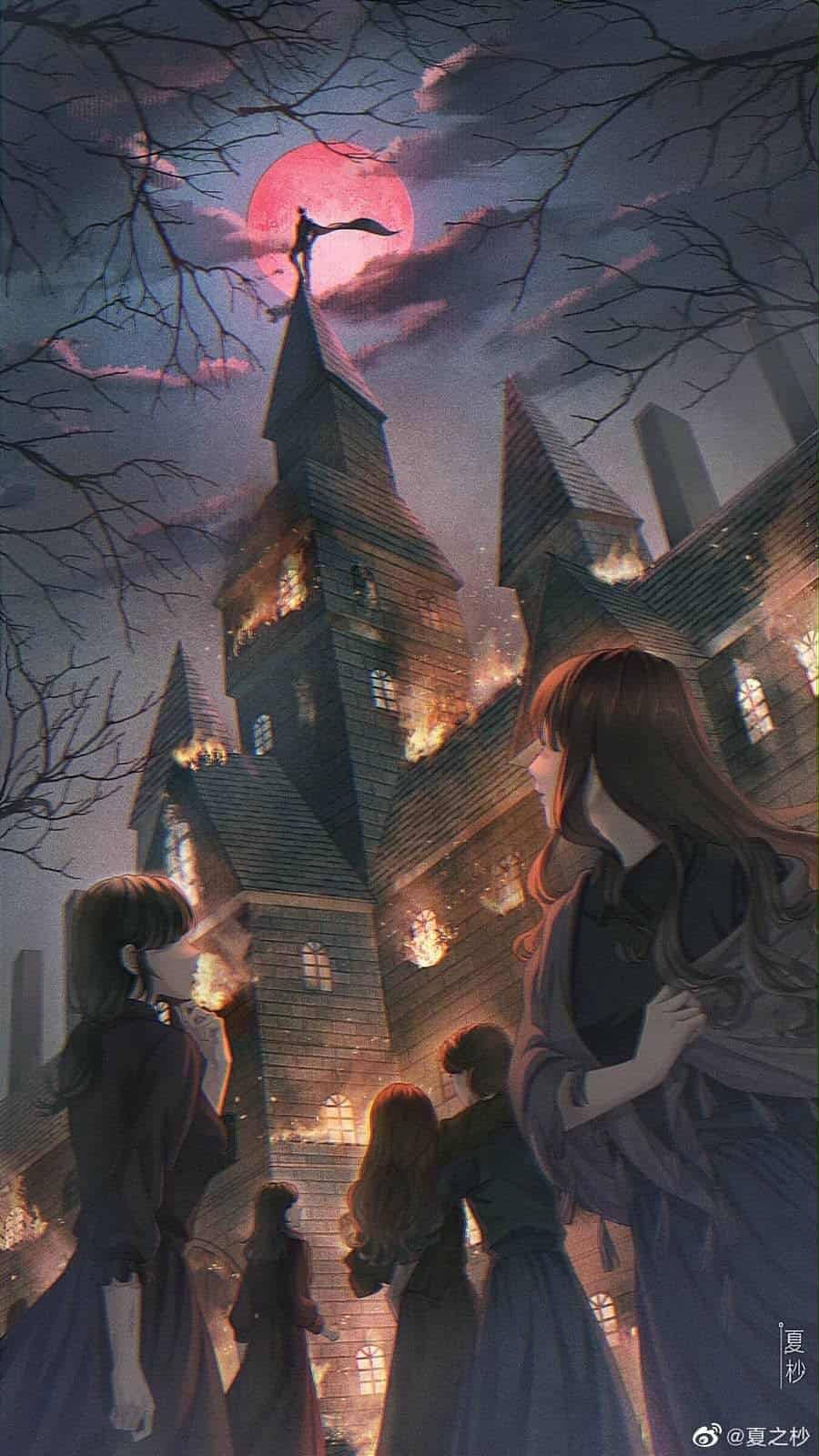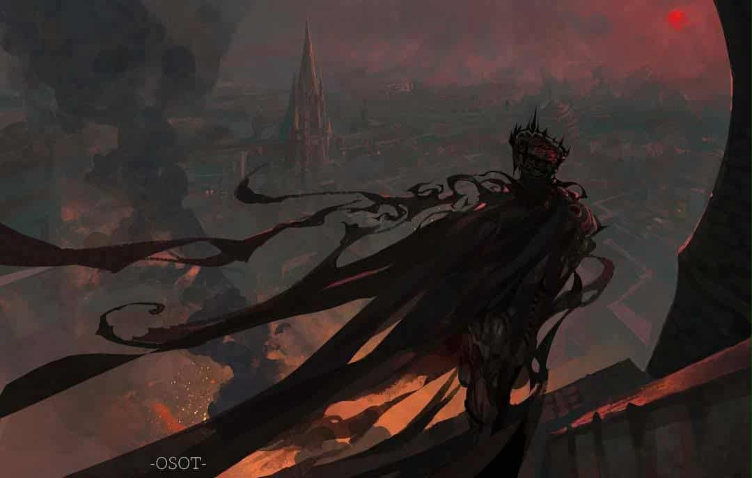 ناظرين إلى الوراء، لقد كانوا بالكاد قادرين على رؤية شخصية مهيبة تقف منتصبة فوق المبنى الشرير. كان يرتدي درع أسود كامل، وكان يرتدي تاجًا أسود.