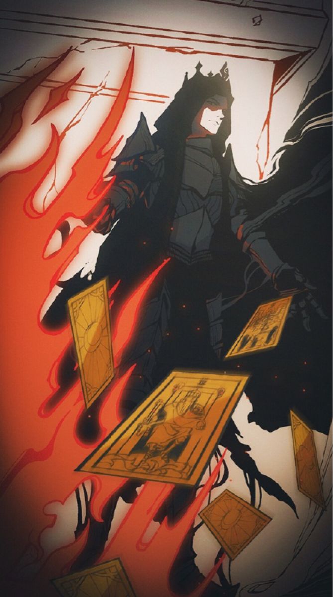 بالعودة إلى غرفة الطعام المدمرة والمحروقة، أخرج جميع بطاقات أركانا الرئيسية من مجموعة بطاقة التاروة وسار إلى جثة كابيم.
