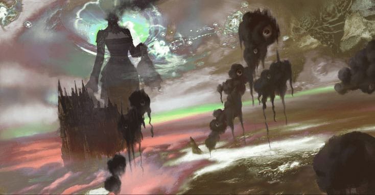 ‘حتى لو لم يكن هناك أي شيء آخر، فسيكون كافياً بالنسبة لي أن أستكشف أنقاض الإلف ومعرفة المعلومات التي تركوها وراءهم…’ عندما مر كلاين من خلال “حاجز” أثيري يشبه الستارة، شعر أن الهواء المحيط به قد أصبح فجأة كثيفًا بشكل ثقيل.