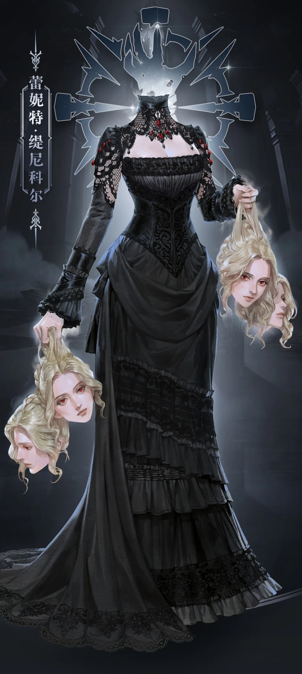 رفرف فستان المرأة مقطوعة الرأس قليلاً، وأومئت رؤوسها الأربعة بالشعر الأشقر والعيون الحمراء في نفس الوقت.