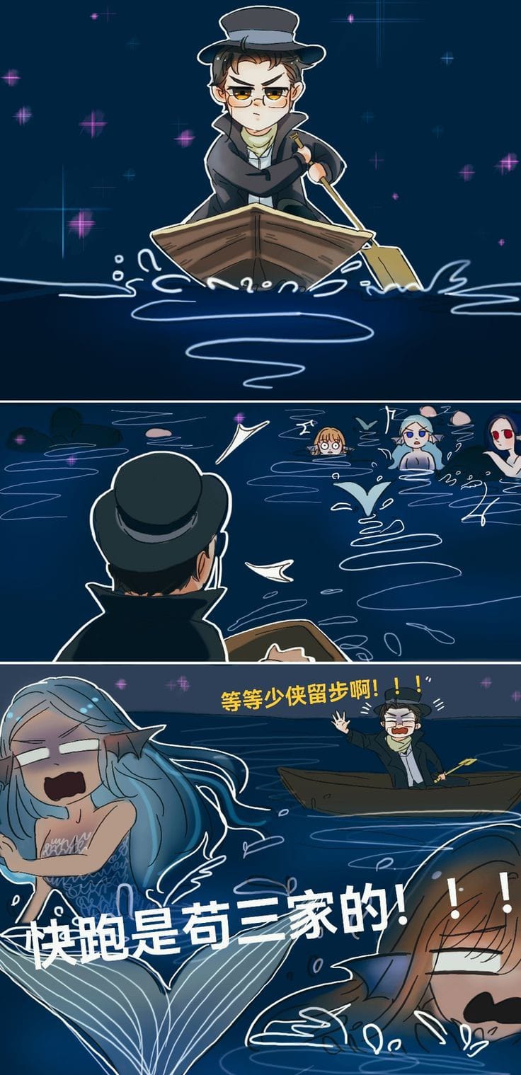 سرعان ما اكتشف أن غناء حوريات البحر لم يتوقف تمامًا. بعيدًا على الشعاب المرجانية كان هناك عدد قليل من حوريات البحر مع ظهورهم تواجهه. لم يكتشفوا فرار رفاقهم بسبب هبوب الرياح وهم يواصلون الغناء بجرأة.