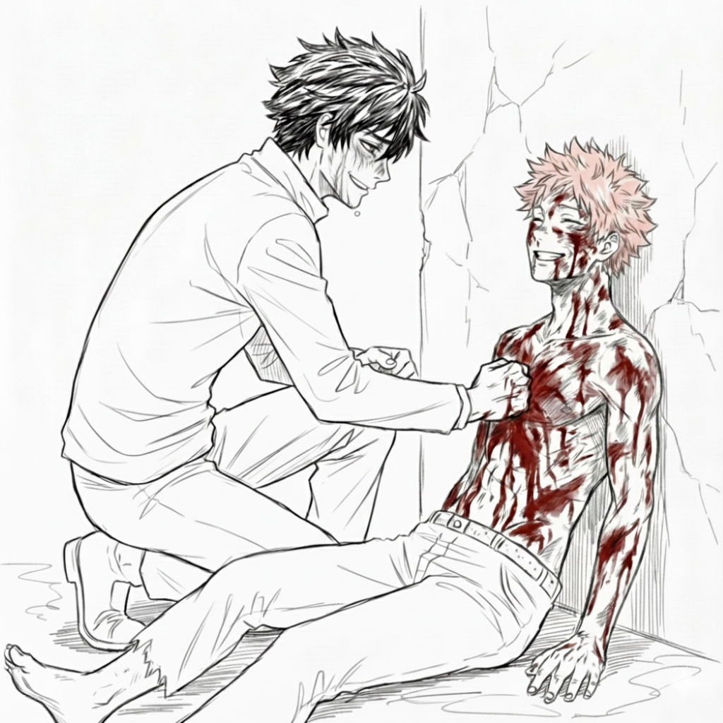اولاً لدينا رين، هذه رسمة لرين لم تكتمل... انها رسمة لرين الاصلي، يوكيهارا رين(الاصلي في عالم قاتل الشياطين )