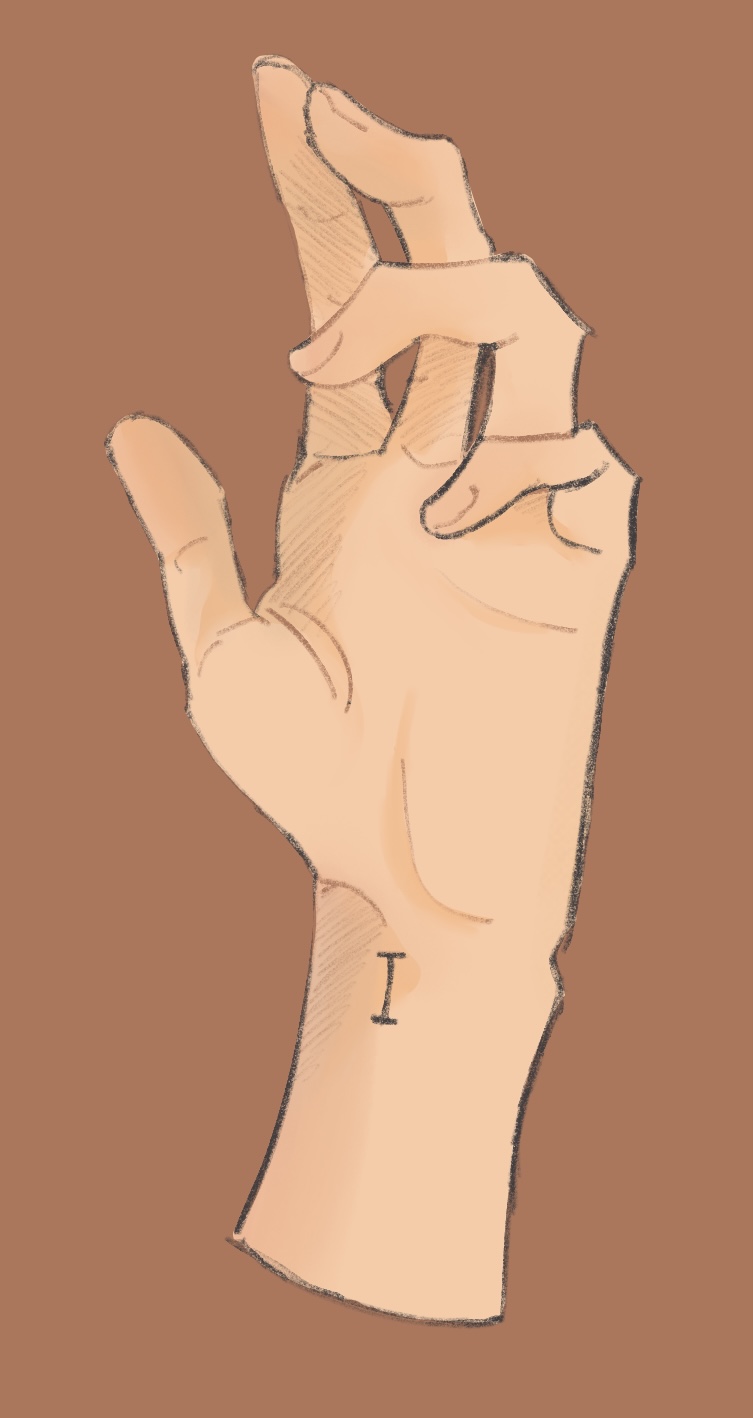 هاه ؟ ما هذا ؟ ظهر رمز غريب على ذراعي لم يكن موجودا في السابق جلست افركه كان بشكل I انه